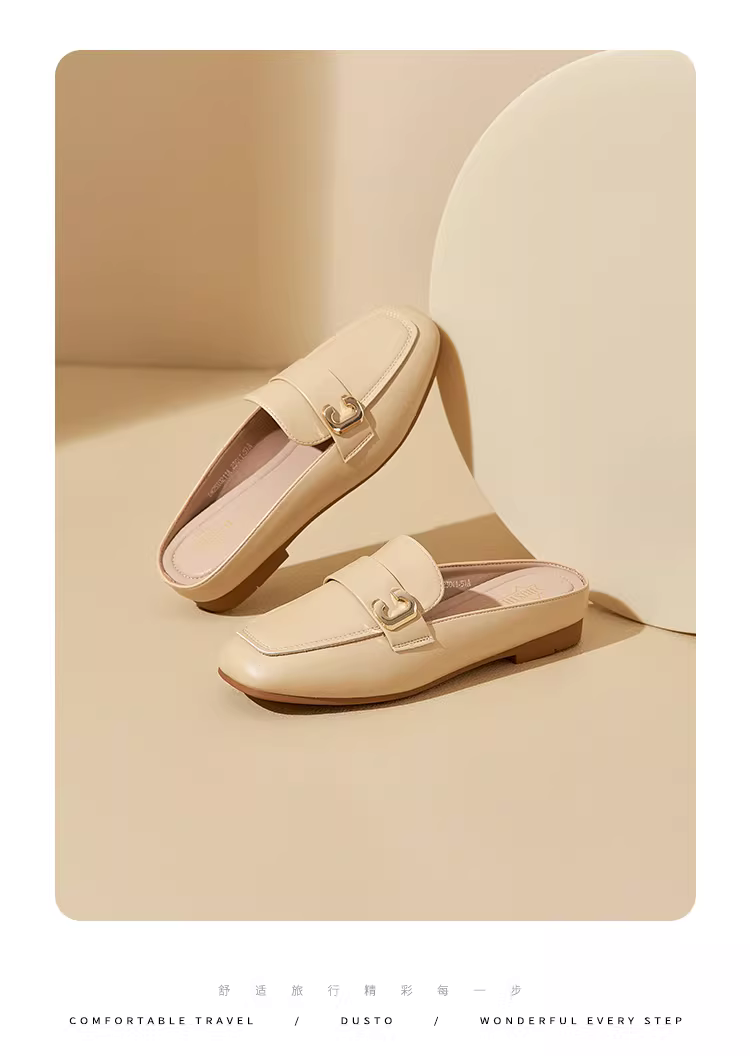 - Giày Dadong Muller, dép nữ nửa đế mùa hè mới 2025, kiểu kín mũi, đế mềm, gót thấp, kiểu lười.