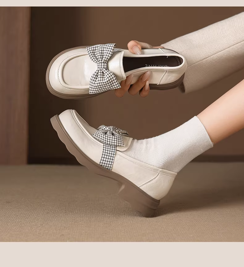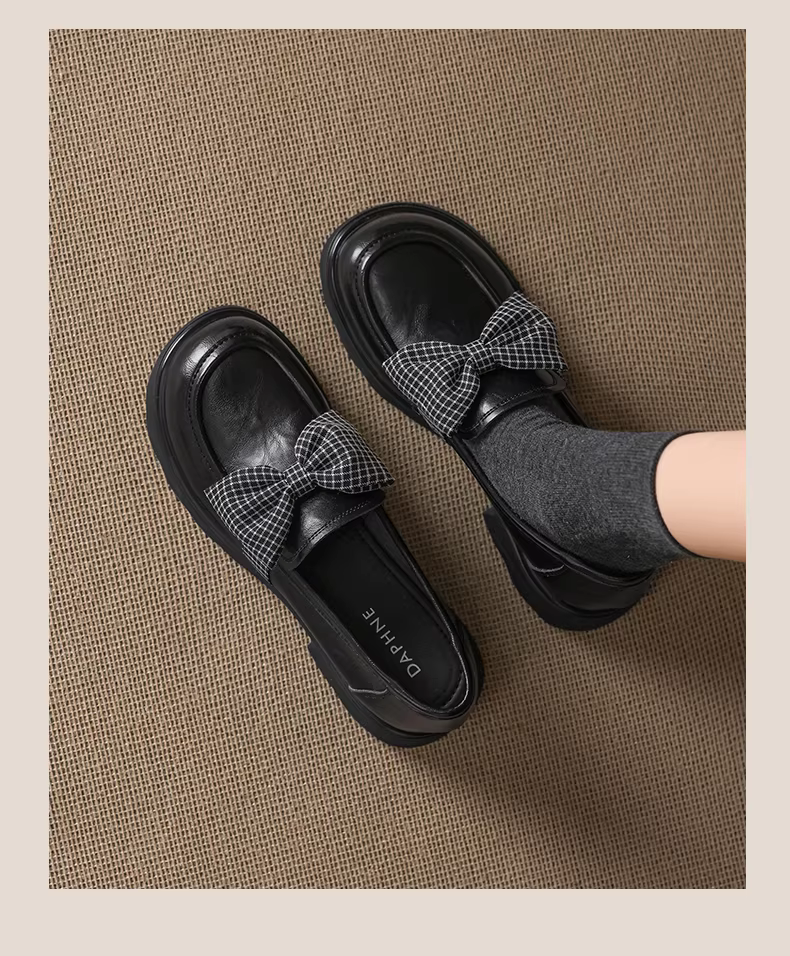 - Giày đế dày Daphne dành cho nữ 2026 mùa xuân mới phong cách Anh quốc Giày đi làm JK giày da đế mềm màu đen