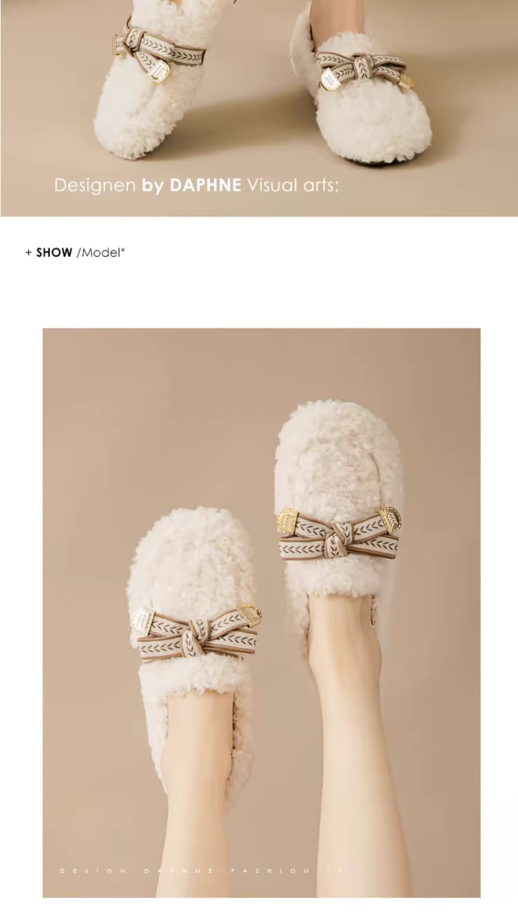 - Giày dép mùa đông cổ điển dành cho nữ của Daphne có lông, giày cotton lông thú phổ biến dành cho văn phòng