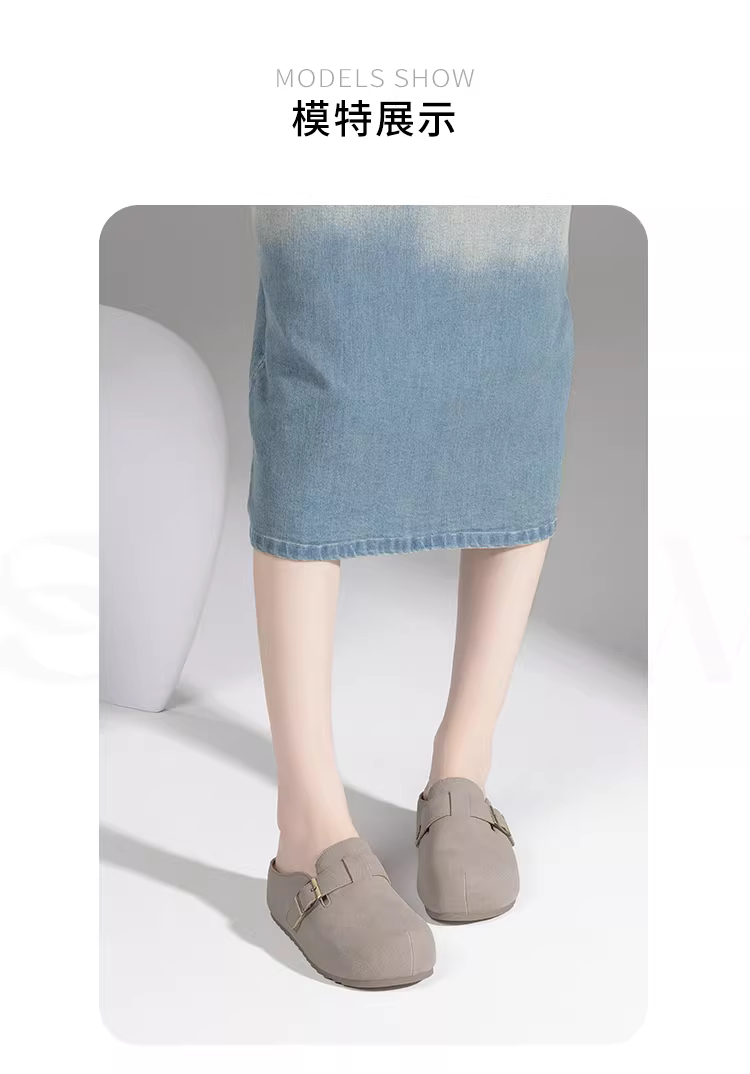 - Giày dép nữ đế dày, mũi kín, mùa thu 2025, giày nữ mới, kiểu dáng Birkenstock, kiểu lười.
