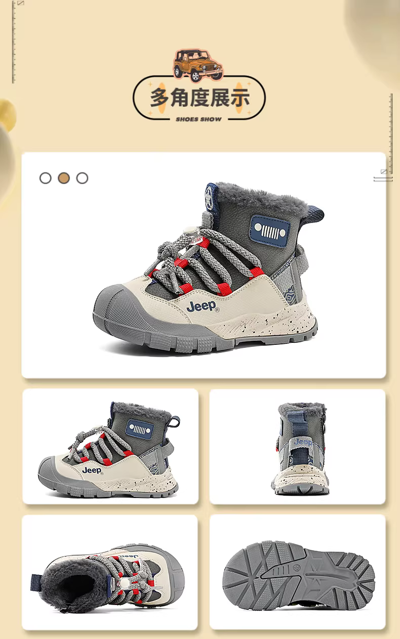 - Giày đi tuyết trẻ em Jeep cho bé trai, chống thấm nước và chống trơn trượt, giày bông cỡ lớn cho mùa đông 2025, giày đi tuyết lót lông cừu mới cho bé gái
