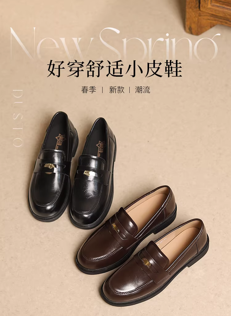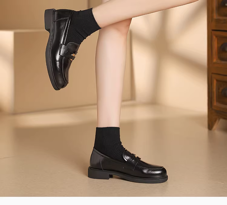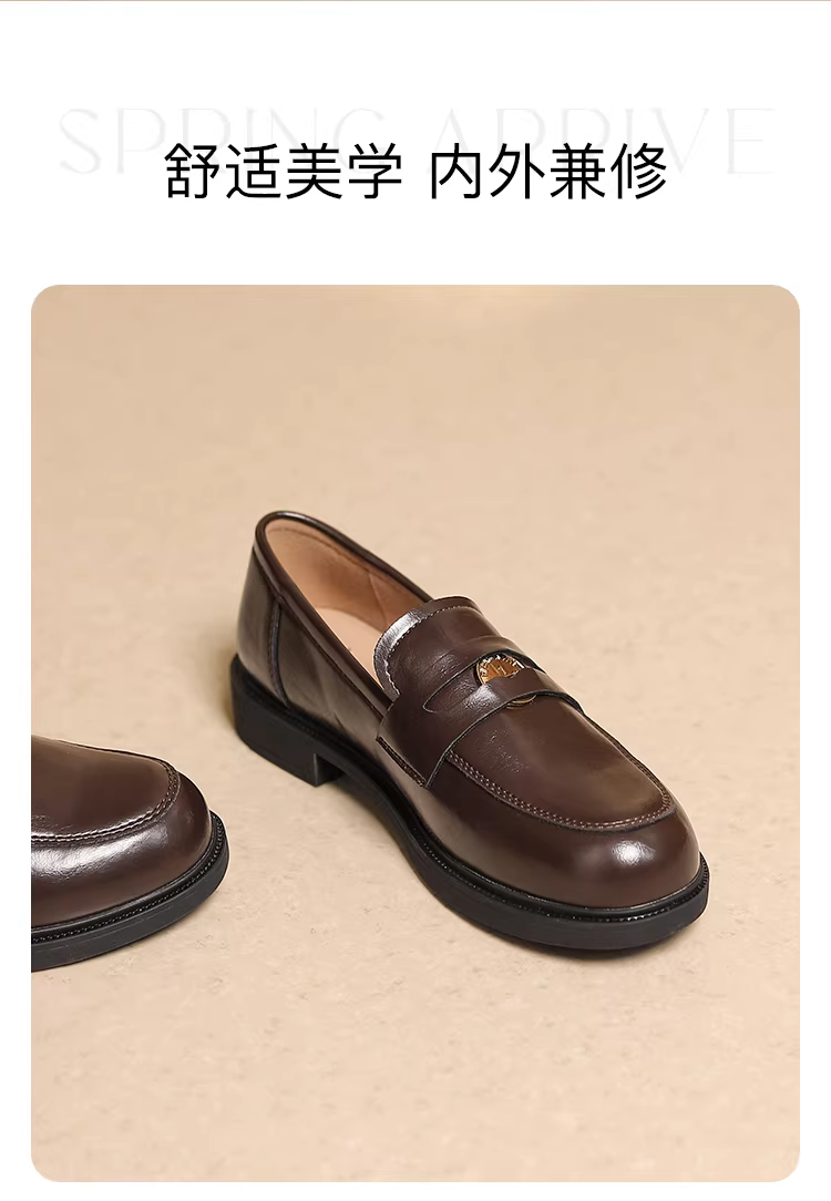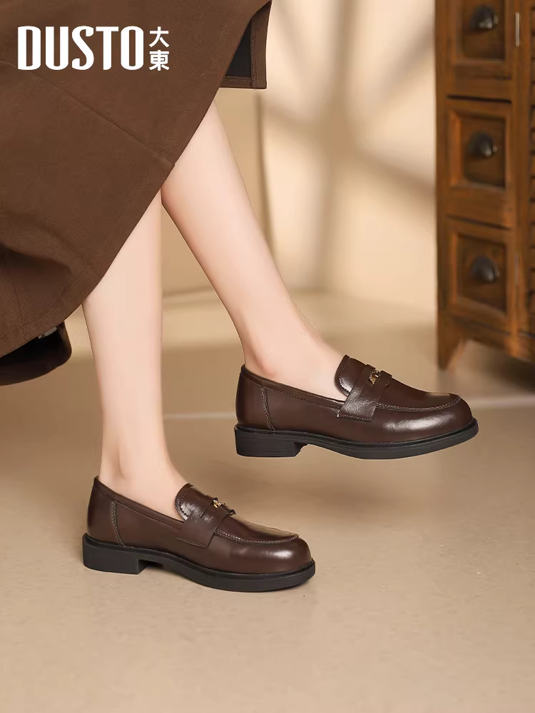 - Giày Loafer Da Nâu Dadong dành cho Nữ Thu Đông 2025 Phong Cách Vintage Học Đường, Giày Da Nhỏ Đi Kèm Váy