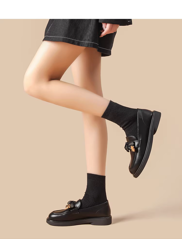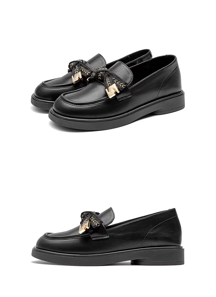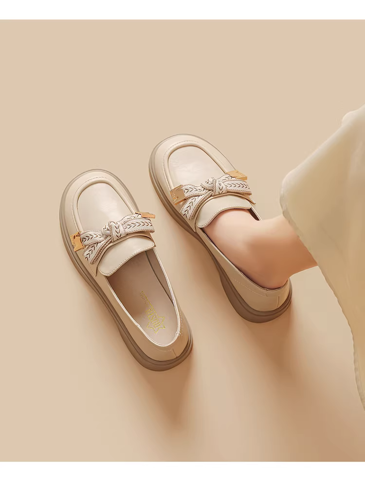 Giày Loafer Dadong Nữ Thu Đông 2025 Phong Cách Anh Quốc, Giày Da Bệt Kiểu JK Có Nơ, Mũi Tròn, Đế Mềm, Giày Đơn