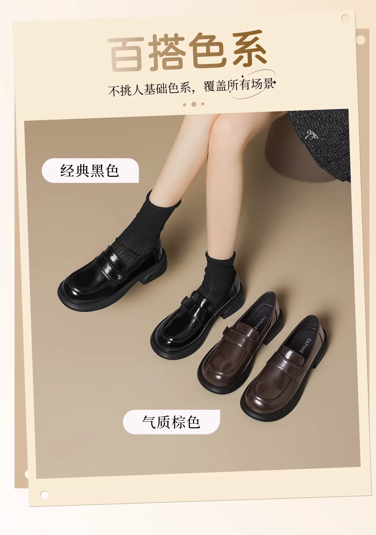 Giày Loafer Daphne nữ 2025 kiểu Anh mới, giày da đen, giày đi làm nữ, giày bệt, giày đơn