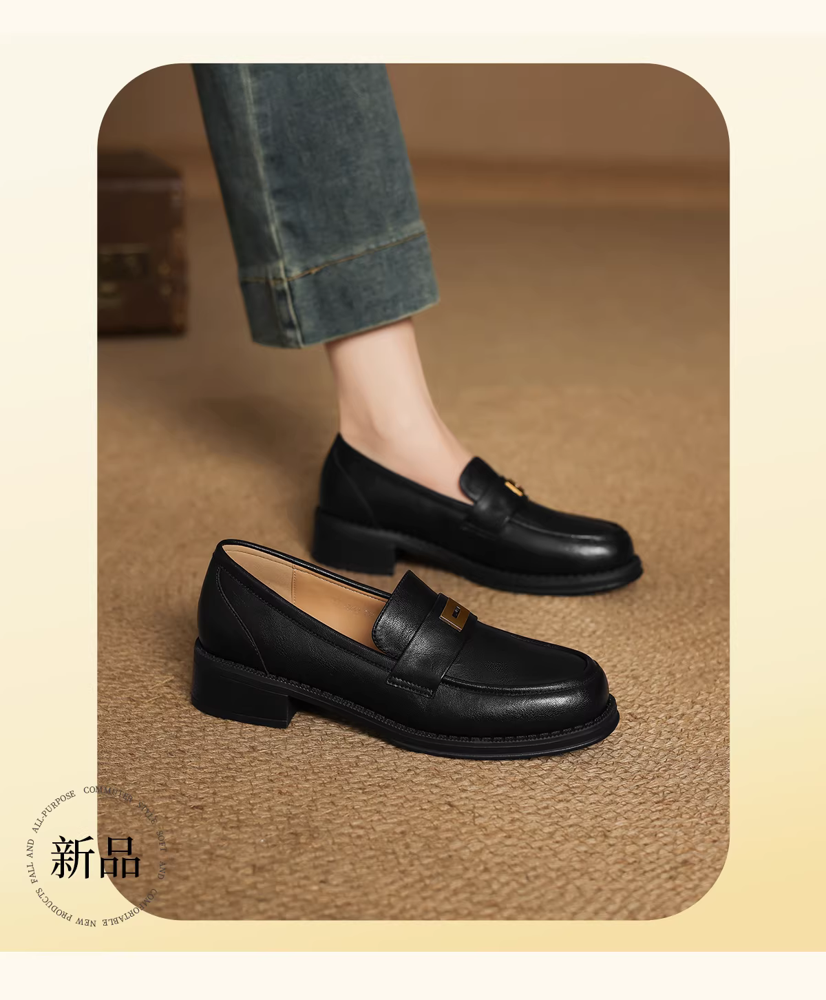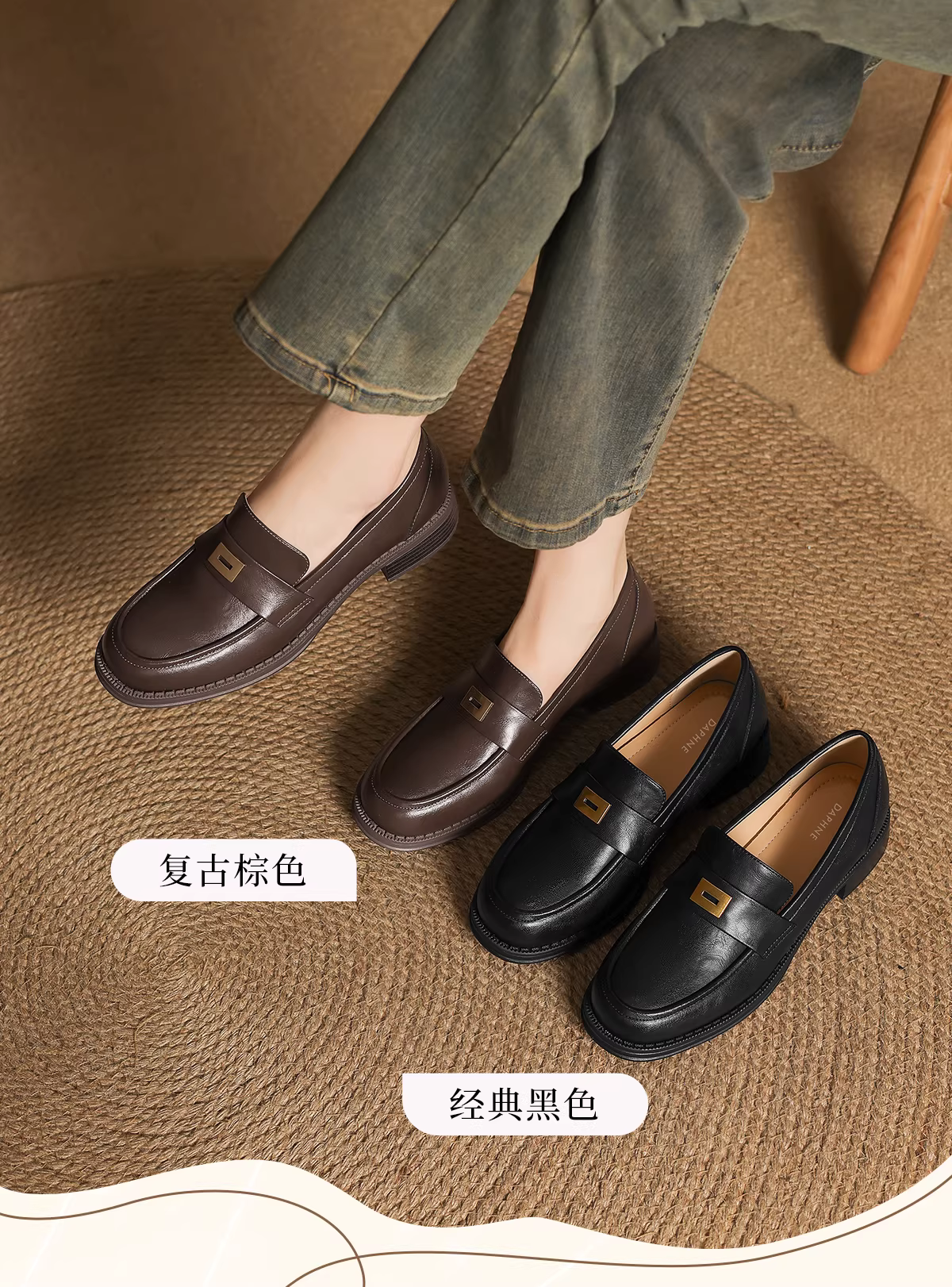 - Giày Loafer Daphne nữ 2025 kiểu dáng mới mùa thu, giày da nhỏ đế bằng phong cách Anh, kiểu dáng mùa thu, kiểu lười, mũi tròn, giày đơn.