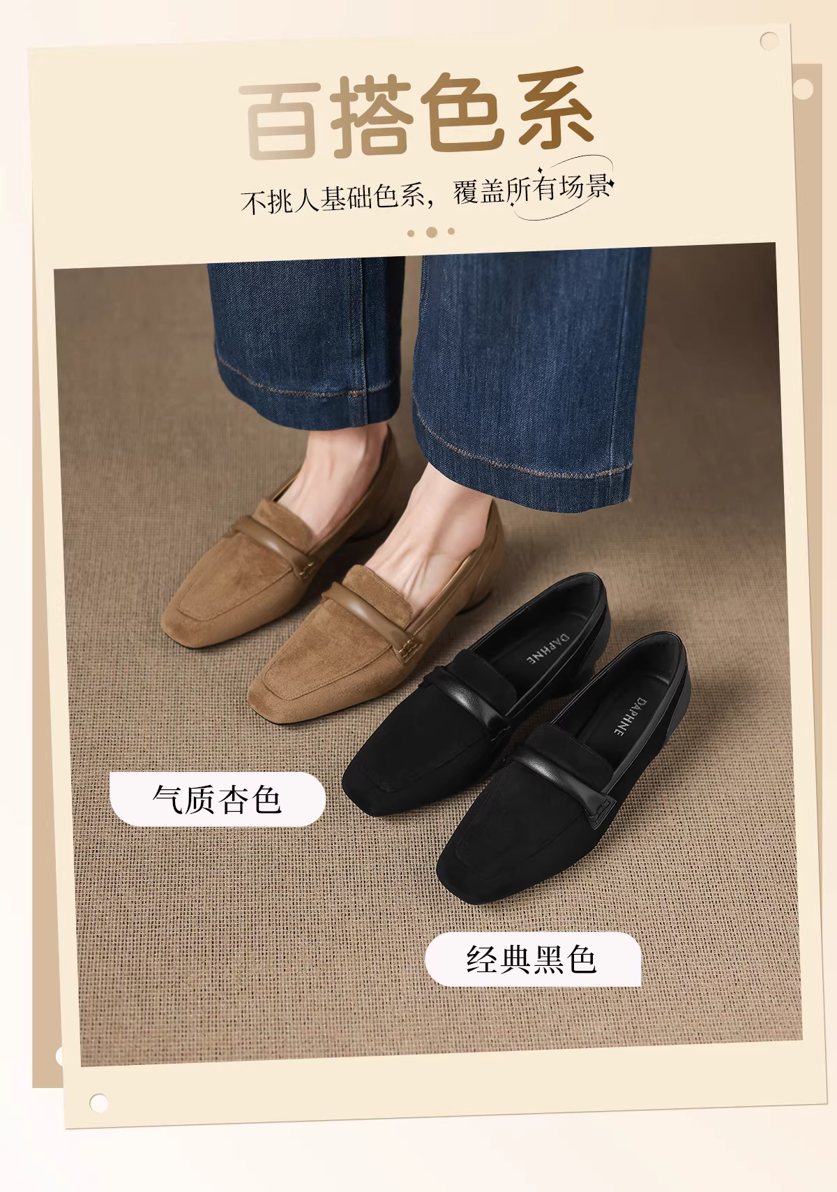 - Giày Loafer Daphne nữ kiểu retro 2025, mẫu mới thu đông, đa năng, đế mềm, mũi vuông, giày đơn giản, đi làm, gót thấp.