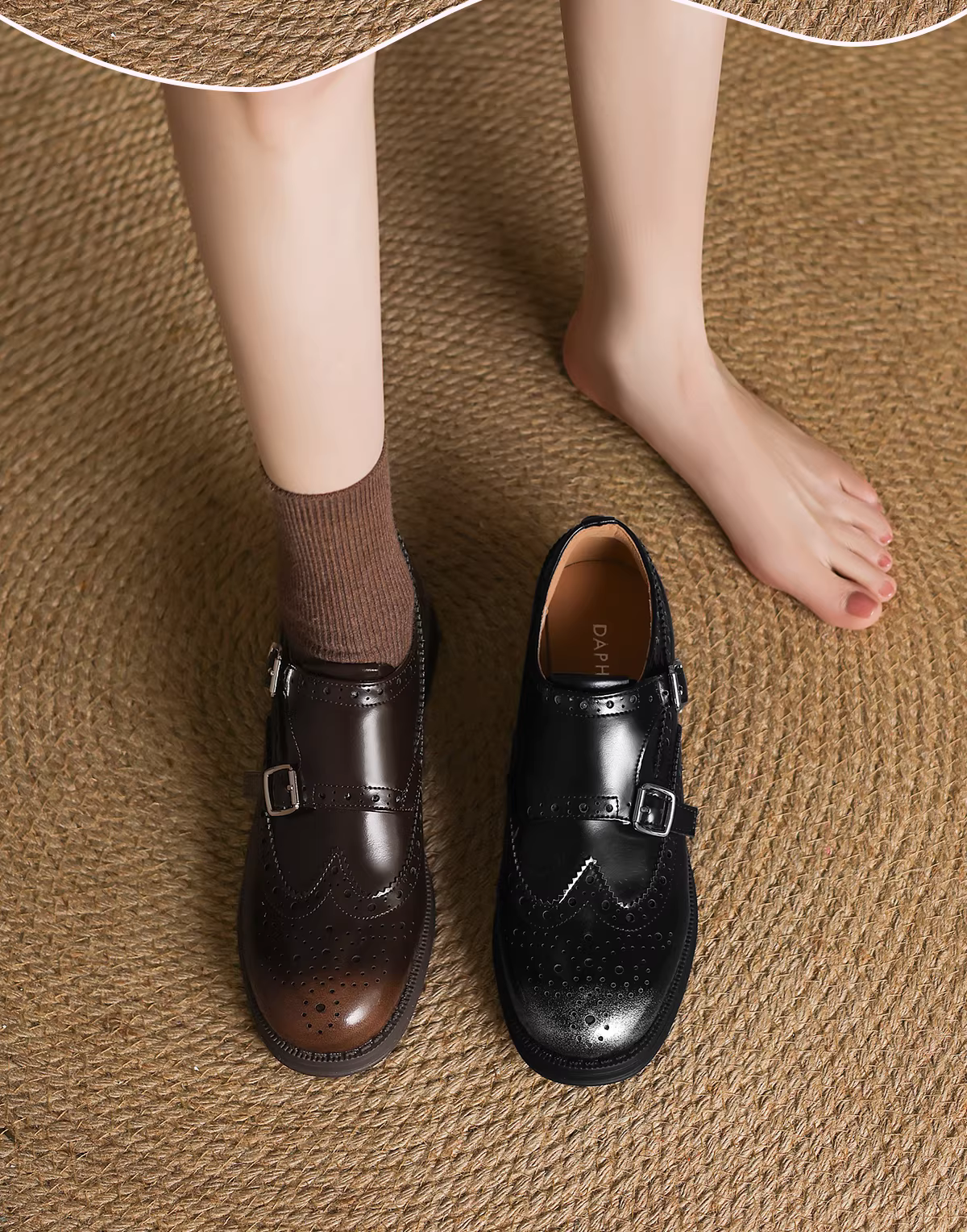 - Giày Loafer đế dày Daphne dành cho nữ, mẫu mới Thu 2025, giày nữ màu nâu phong cách Anh, giày da nhỏ, giày bệt kiểu Brogue