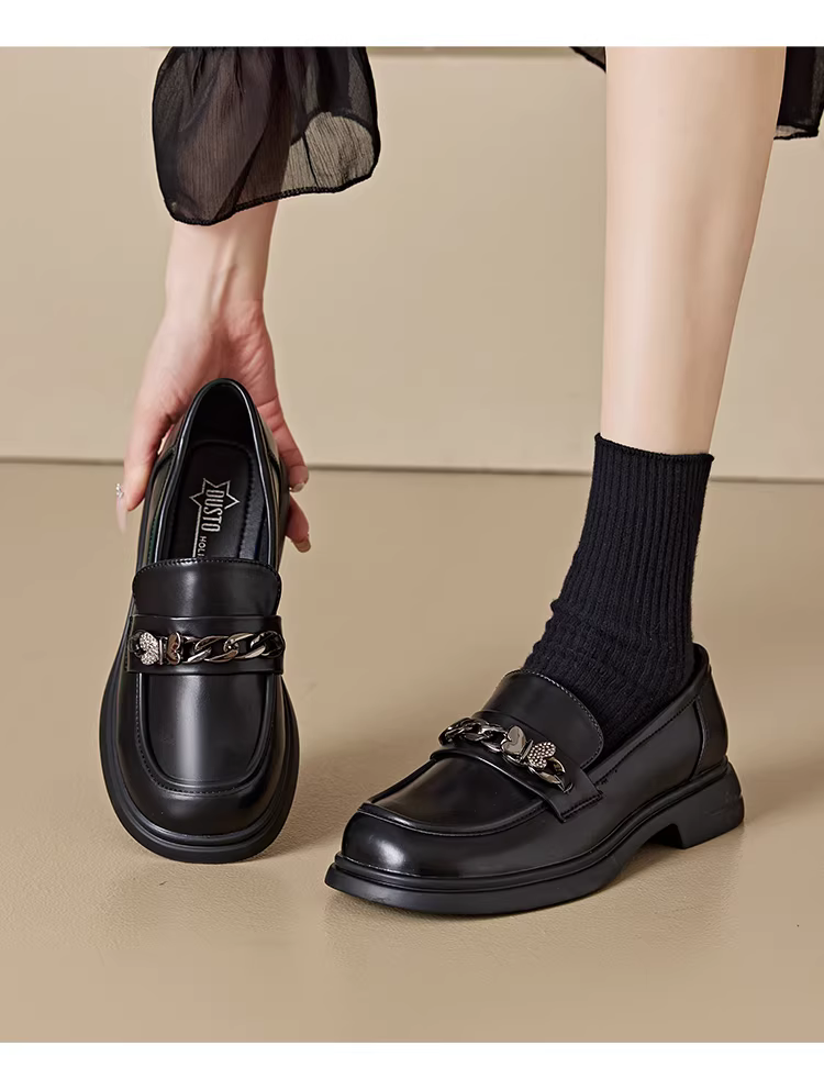 - Giày Loafer Nữ Dadong 2025 Mẫu Mới Thu Đông Giày Đế Mềm Đa Năng Kiểu Hàn Quốc Màu Đen Chất Liệu Da