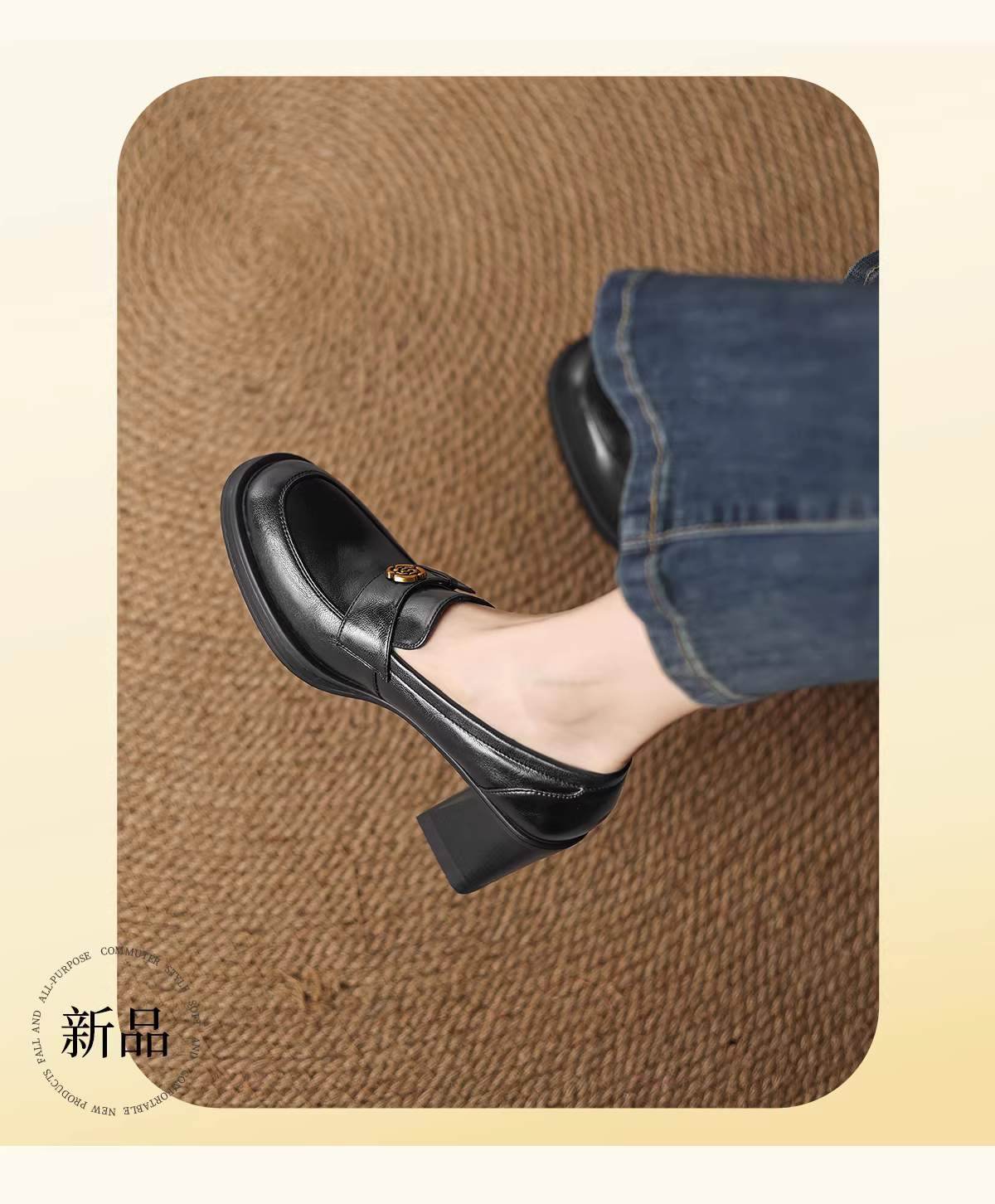 - Giày Loafer Nữ Daphne Camellia Thu Đông 2025 Mẫu Mới, Giày Cao Gót Gót Thô Tăng Chiều Cao Phong Cách Anh Quốc, Giày Da Nhỏ
