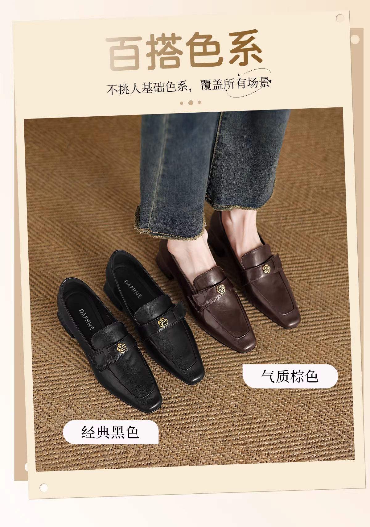 - Giày Loafer Nữ Daphne Camellia Thu/Đông 2025 Mẫu Mới Mũi Nhọn Đế Mềm Da Thật Đi Làm Dễ Mang