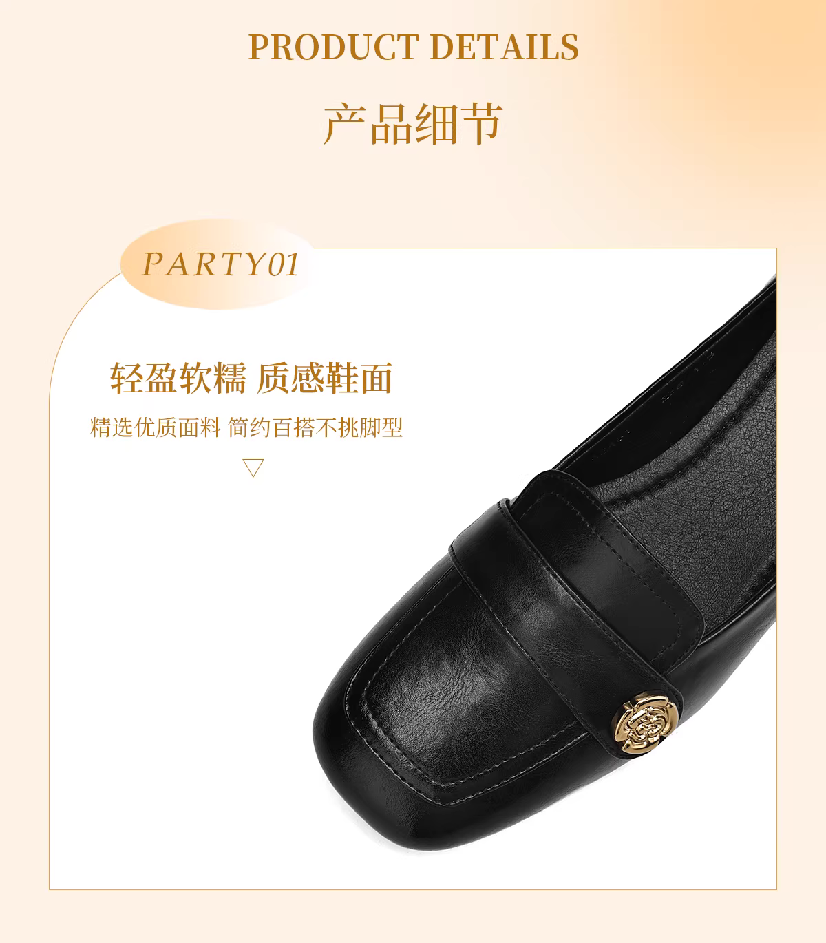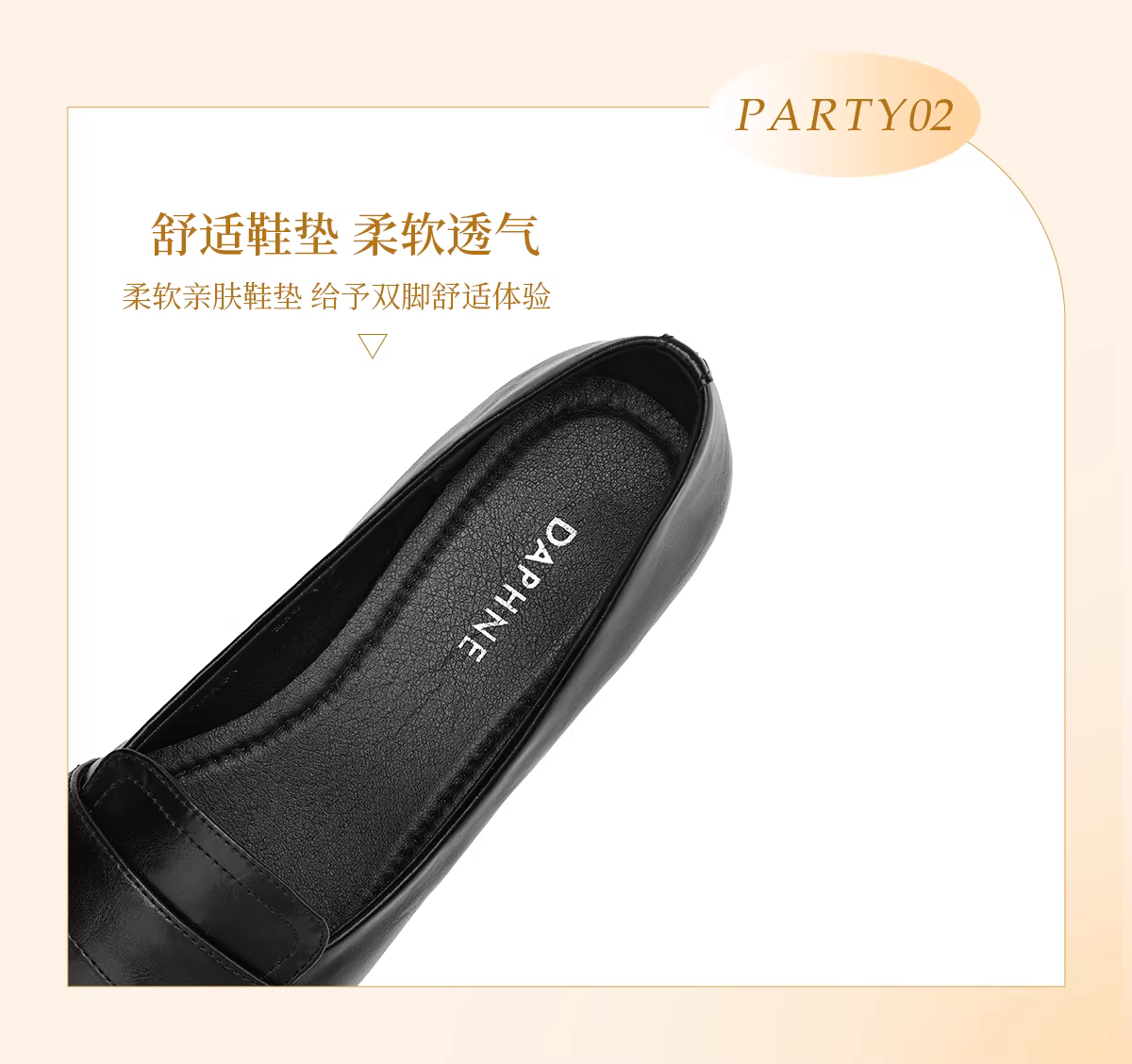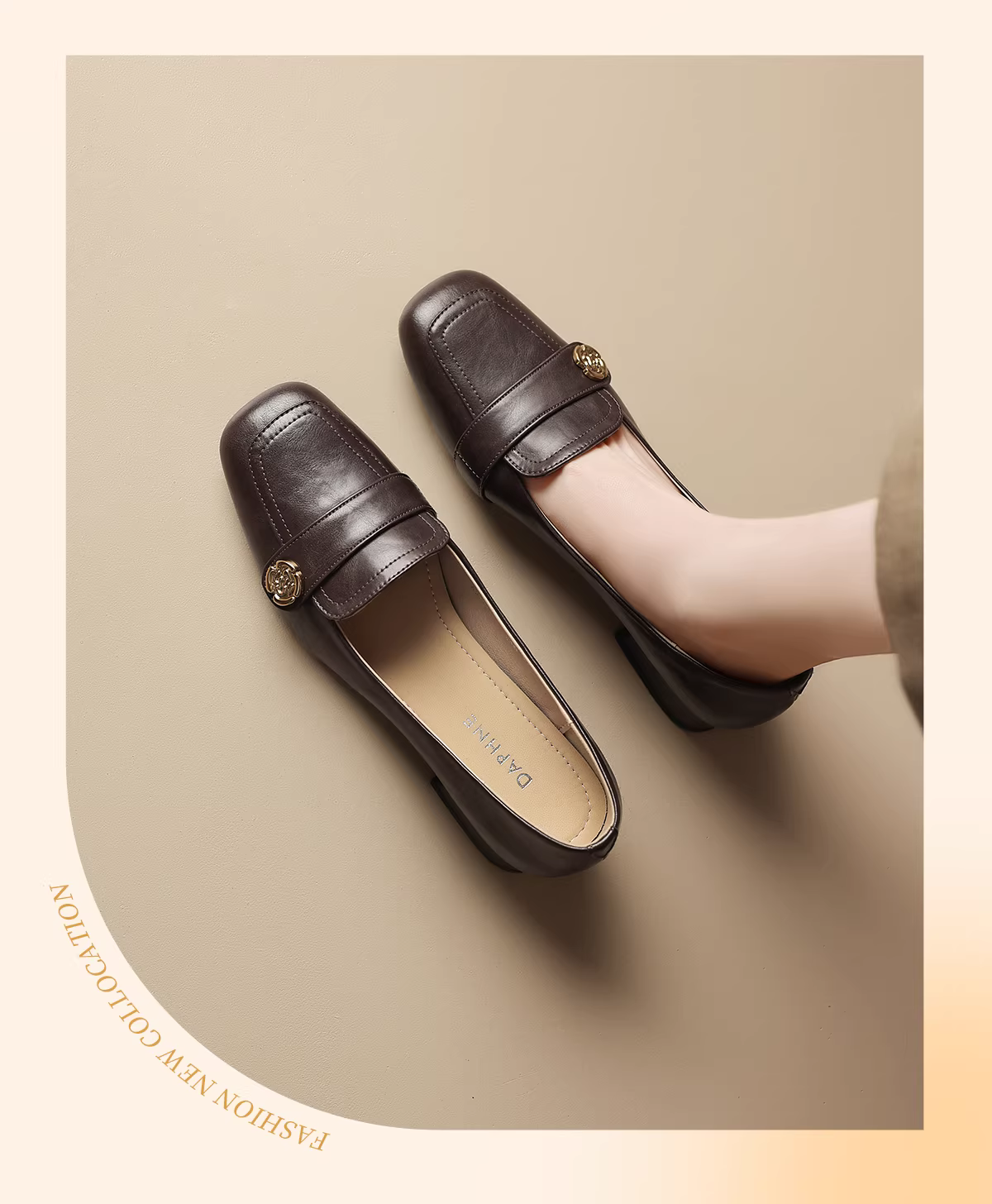 Giày Loafer nữ Daphne đế xuồng, kiểu dáng mới Xuân Hè 2025, mũi vuông, phong cách Pháp, đi làm, retro, đế mềm, chất liệu da nhỏ.