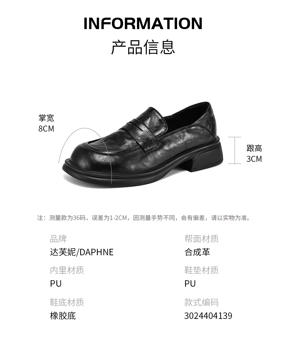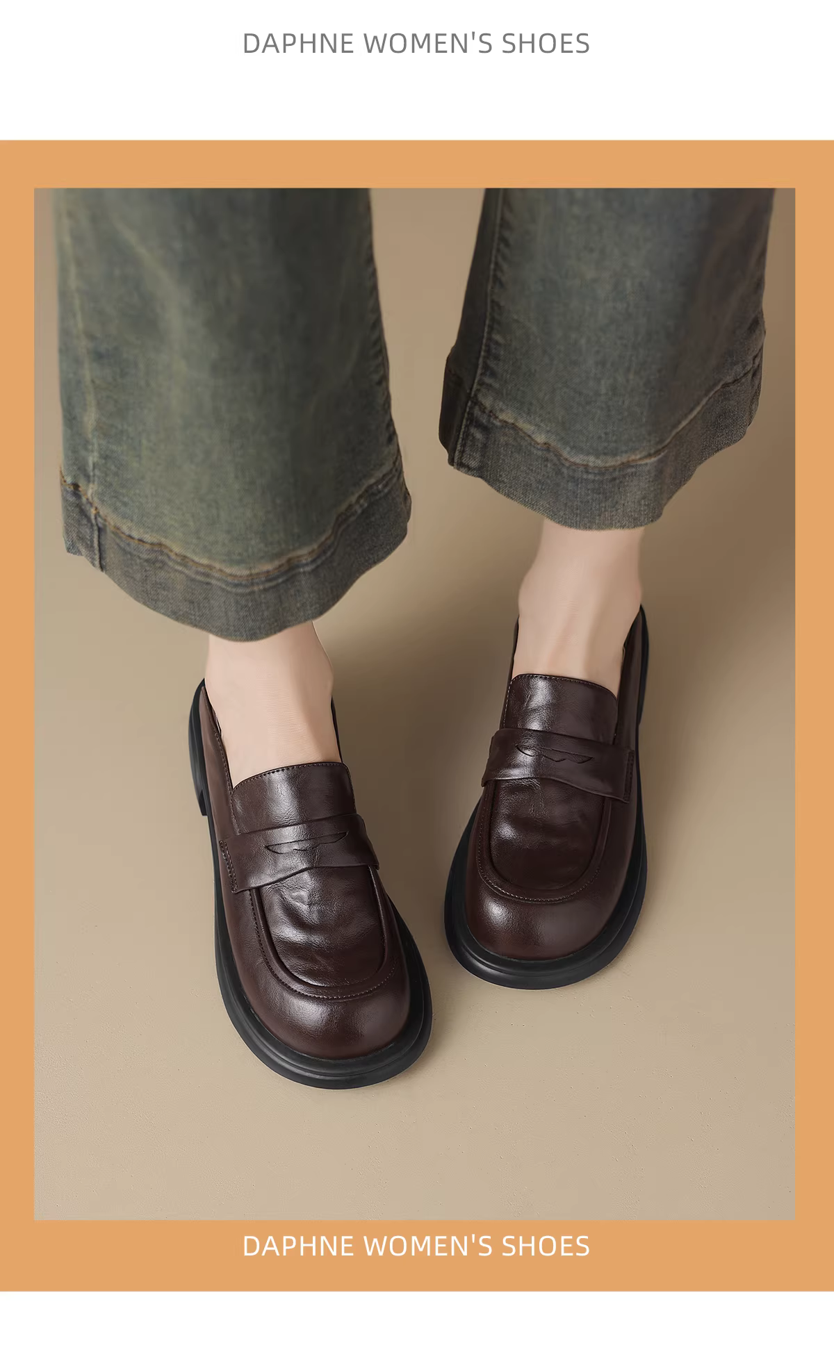 - Giày Loafer nữ Daphne màu đen, mẫu mới Thu 2025, chất liệu da mềm, đế bằng, gót thấp, kiểu dáng công sở, giày da nhỏ gọn phong cách Anh.
