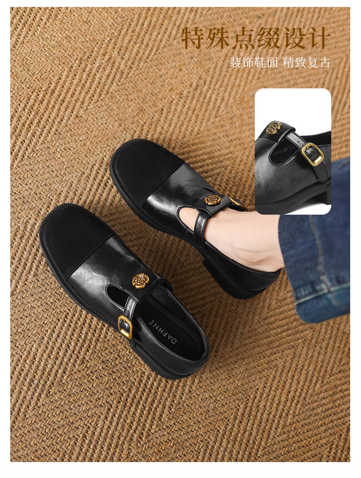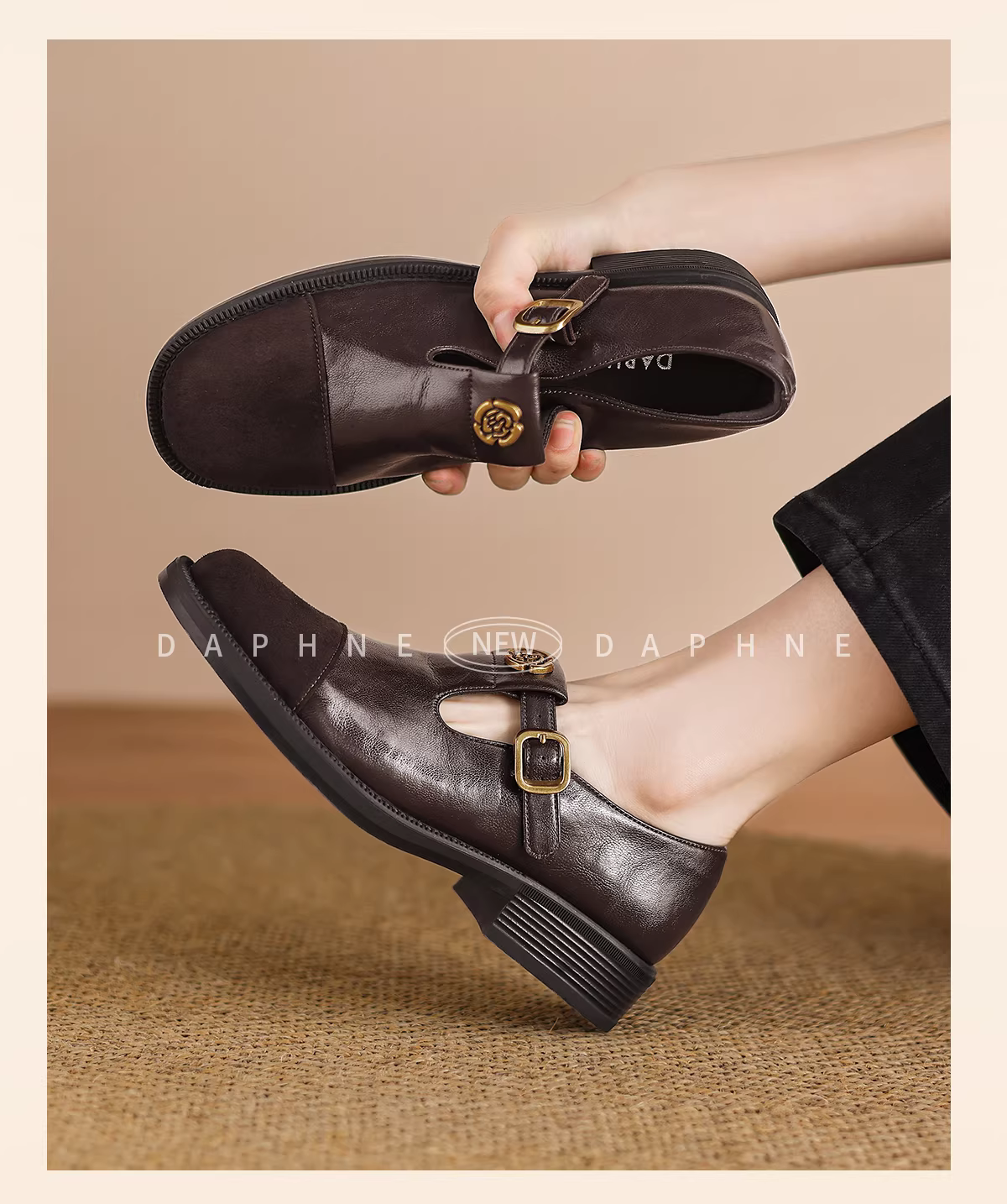 Giày Loafer nữ Daphne màu nâu, kiểu Anh, đế dày, mùa thu mới 2025, giày da nhỏ, kiểu Mary Jane.