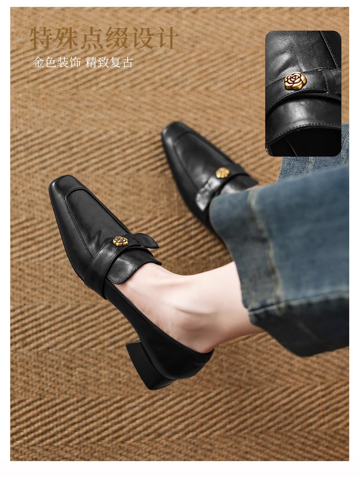 - Giày Loafer nữ Daphne màu nâu, mẫu mới Thu 2025, kiểu Pháp mũi vuông, giày da đế bằng.