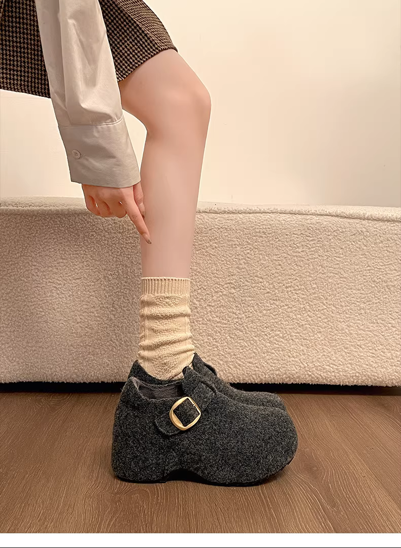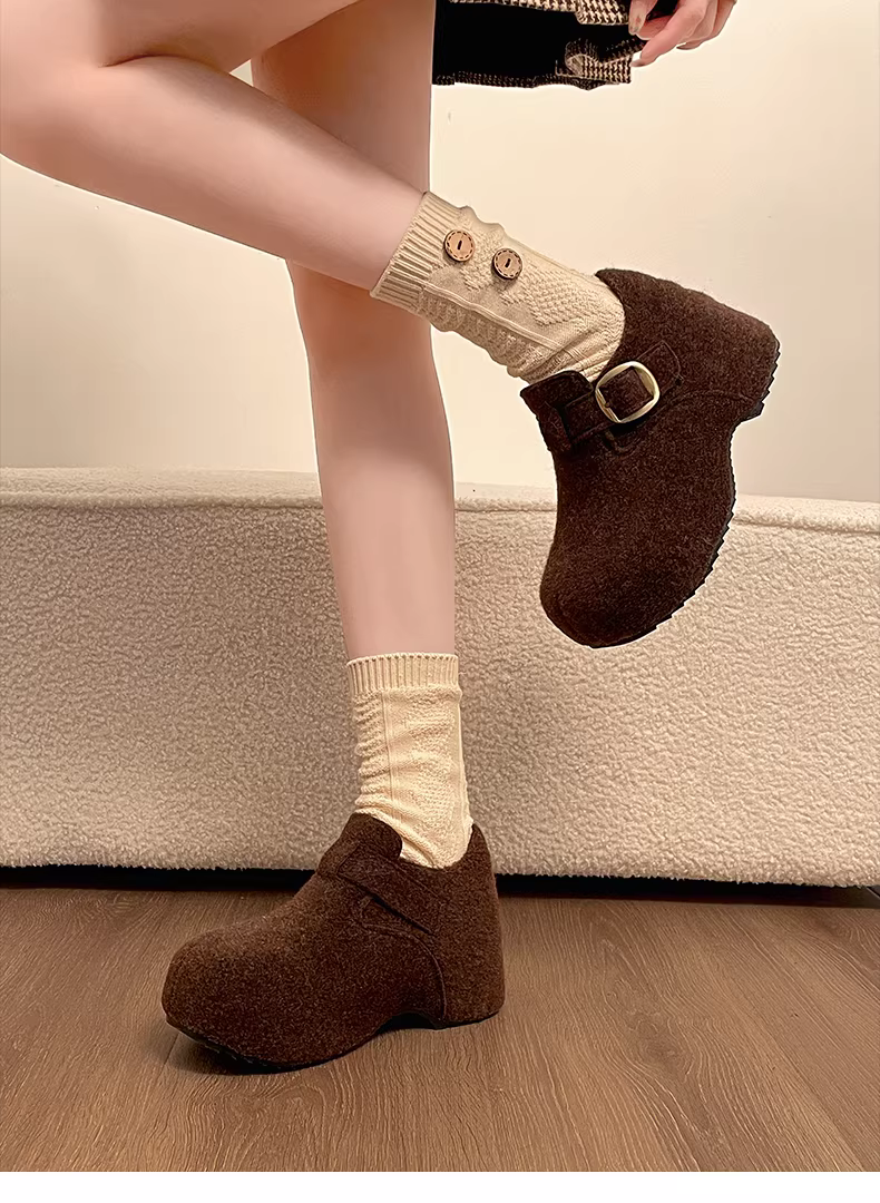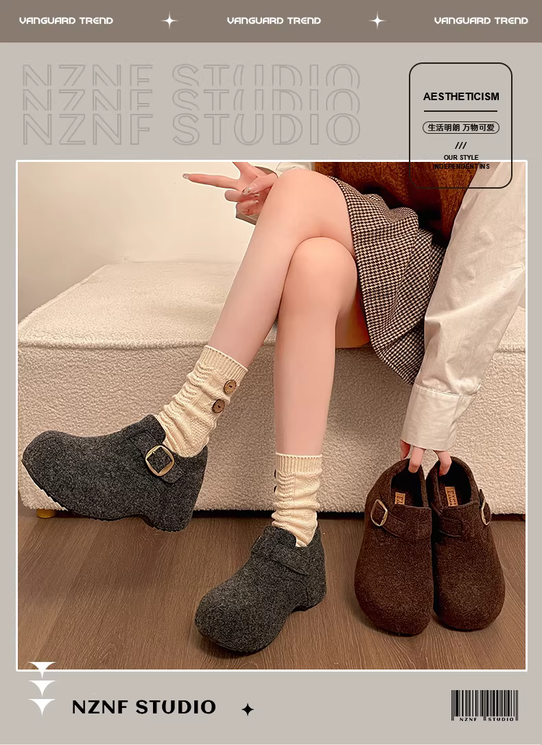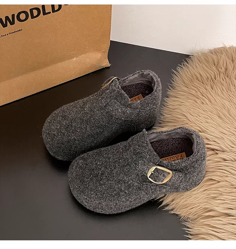 - Giày lông cừu lót lông giữ ấm đế dày tăng chiều cao kiểu Birkenstock cổ điển mùa đông mới 2025 dành cho nữ