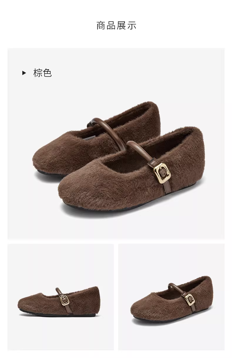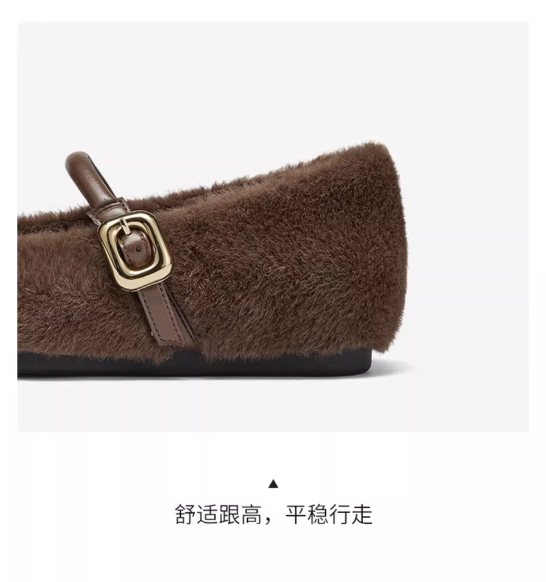Giày lông Daphne dành cho nữ, kiểu mới thu đông 2025, kiểu Pháp, quai đơn, đế bằng mềm, lót lông cừu, kiểu Mary Jane