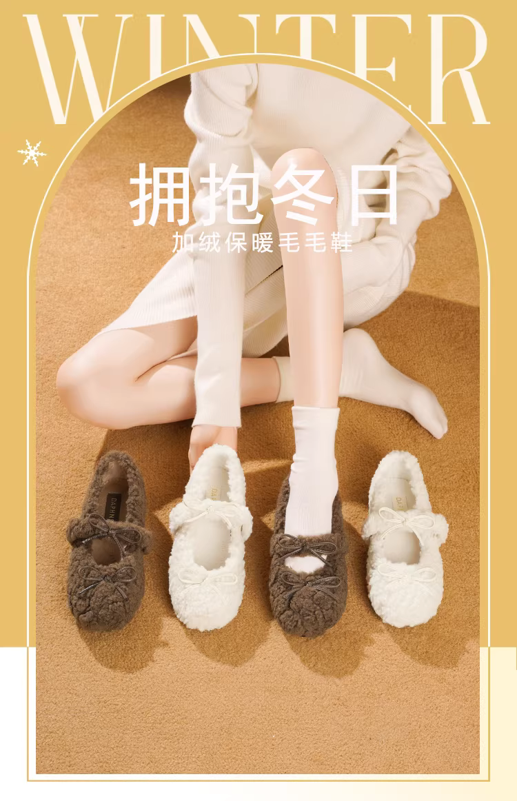 Giày lông mềm Daphne dành cho nữ, mẫu mới thu đông 2025, giày nữ đi ngoài trời, giày bông ấm áp, giày Mary Jane nữ.