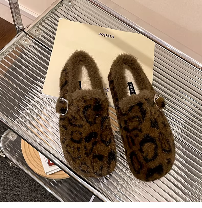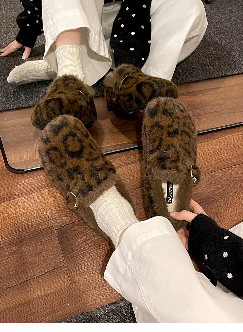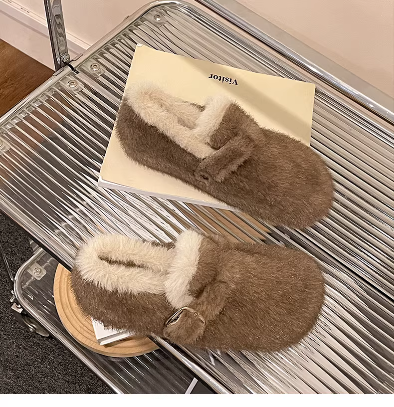 Giày lông mềm mại, ấm áp, đế dày dành cho nữ, mẫu mới mùa đông 2025, kiểu Birkenstock, chất liệu cotton, giữ ấm toàn bộ bàn chân.