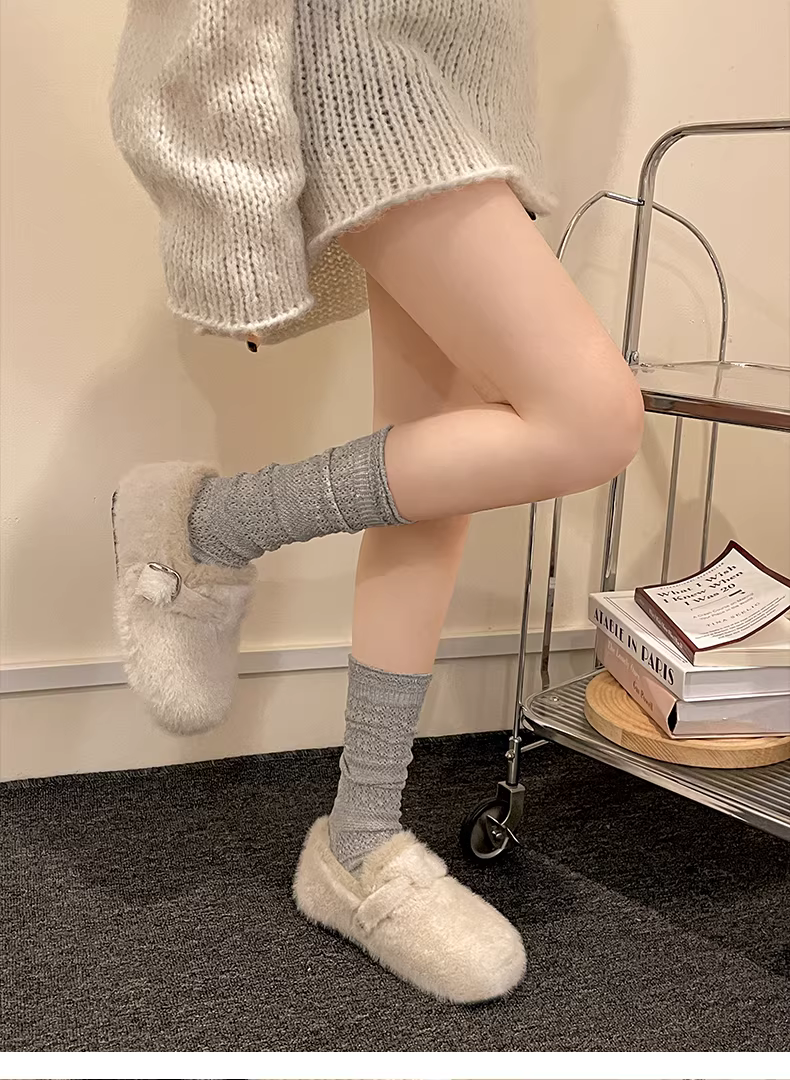 - Giày lông mềm mại, ấm áp, đế dày dành cho nữ, mẫu mới mùa đông 2025, kiểu Birkenstock, chất liệu cotton, giữ ấm toàn bộ bàn chân.