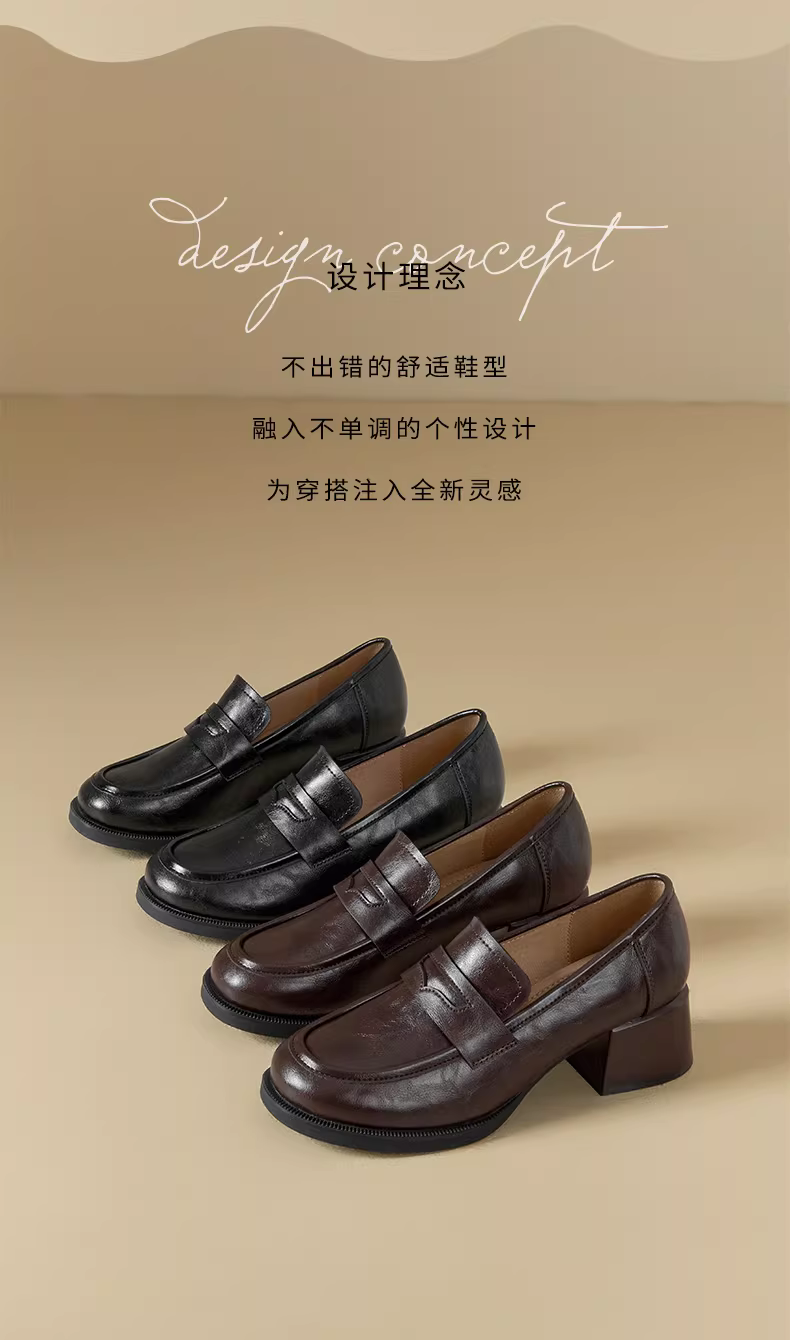 Giày lười cao gót Dadong dành cho nữ 2025, kiểu mới mùa đông, kiểu Anh, màu đen, chất liệu da, tăng chiều cao
