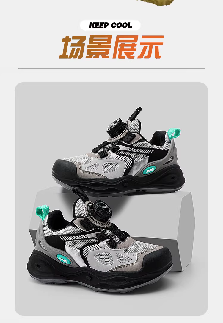 - Giày lưới chống trơn cho bé trai Jeep, giày leo núi mùa thu 2024, giày thể thao trẻ em mới, đế mềm, giày trẻ em
