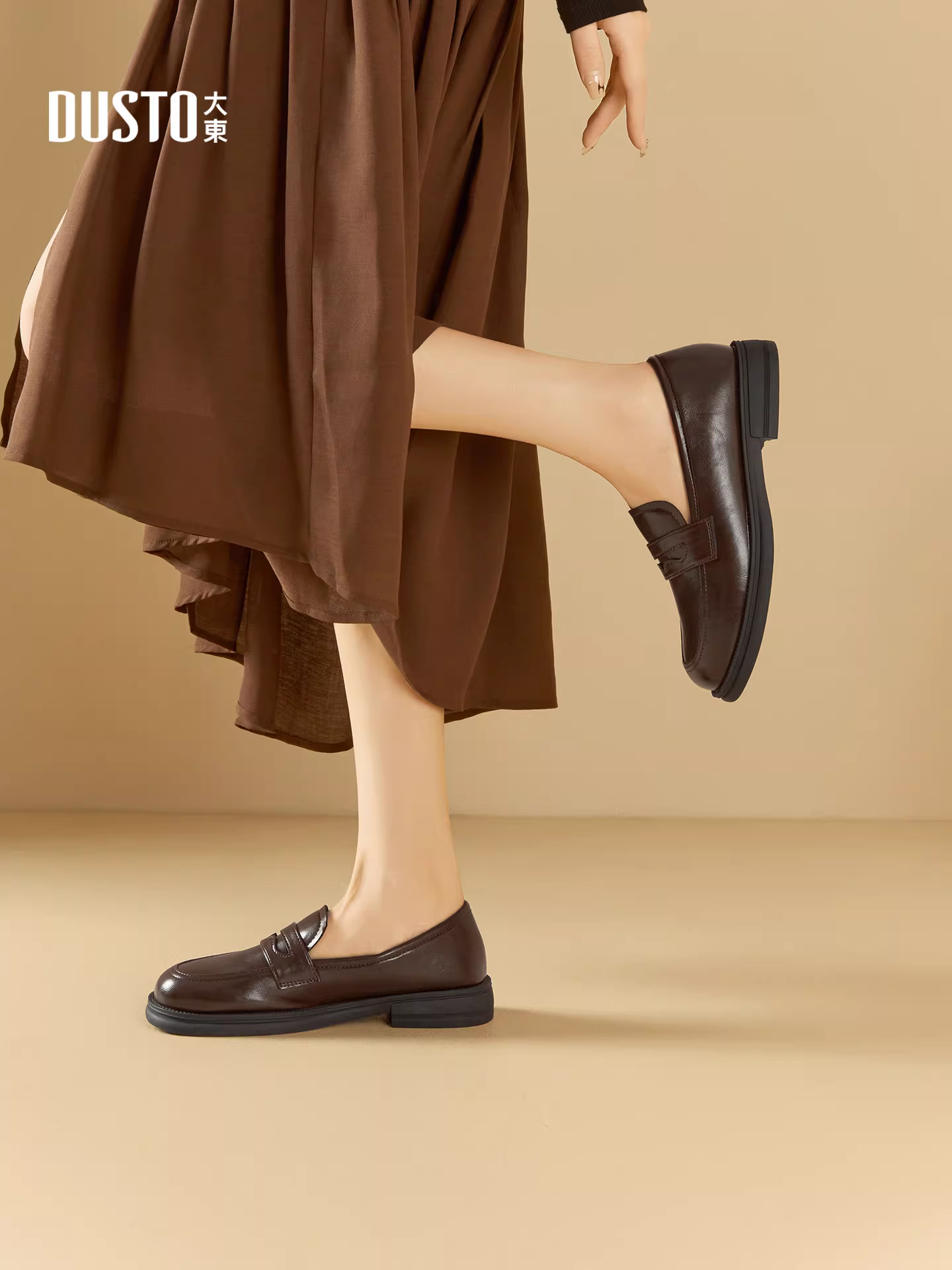 - Giày lười da đen Dadong dành cho nữ, mẫu mới thu đông 2025, kiểu Anh, đi cùng chân váy, giày da nhỏ gọn.