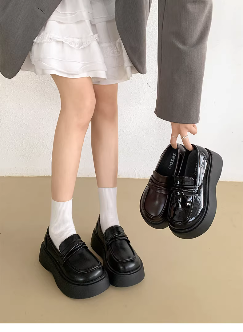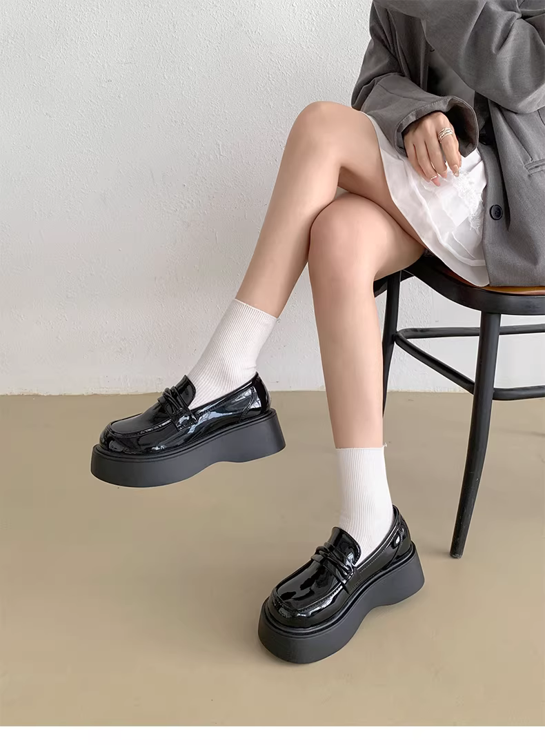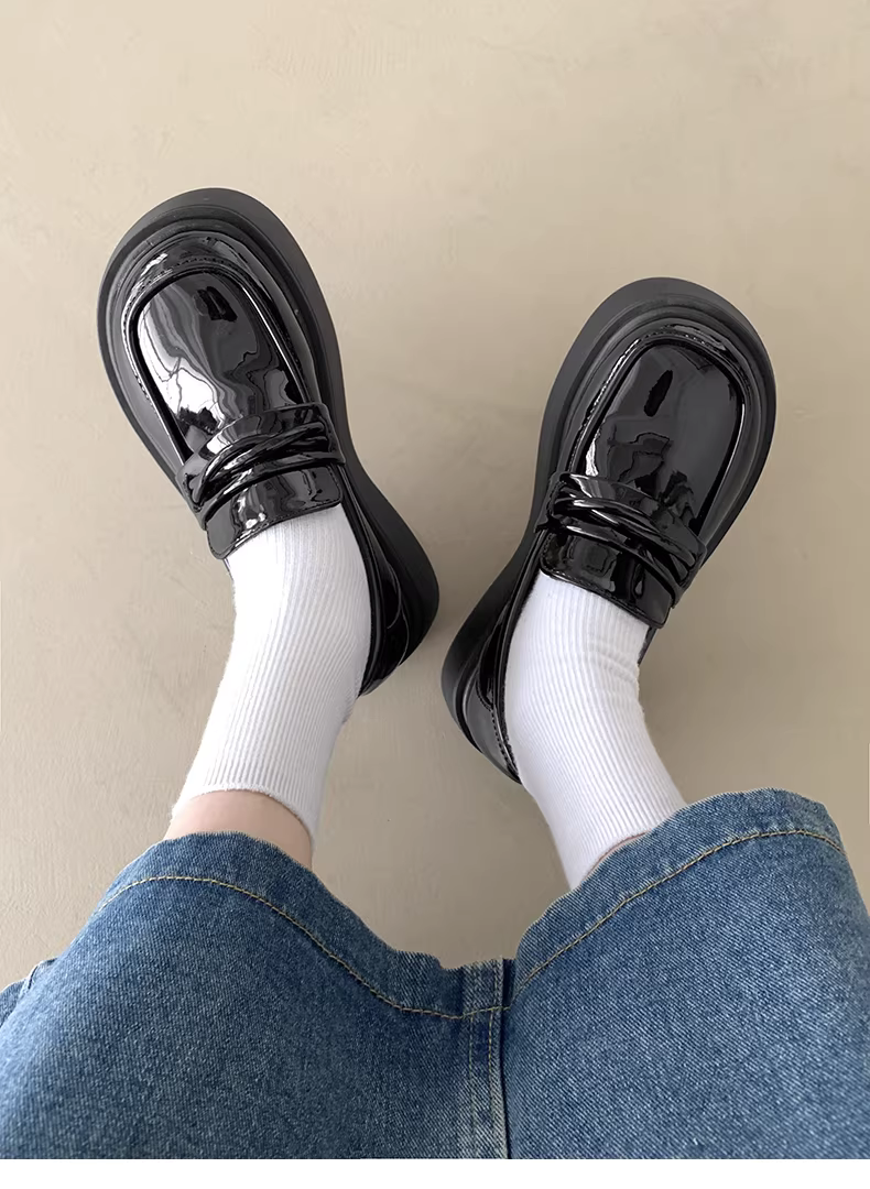 Giày lười da nữ đế dày kiểu Anh cổ điển, mẫu mới thu đông 2025, đa năng, tăng chiều cao