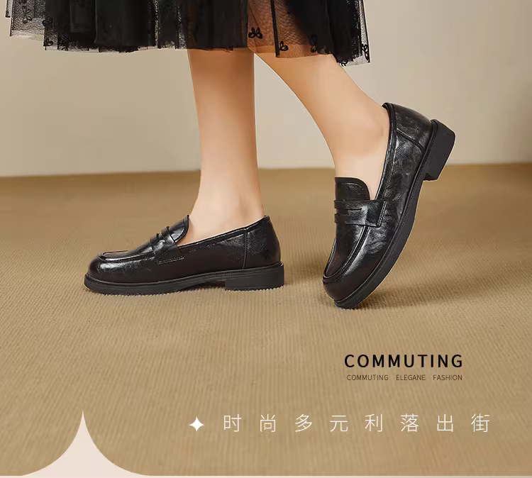 - Giày lười Dadong retro nữ 2025 mới thu đông màu đen đế dày đa năng giày da nhỏ kiểu Anh giày đi làm