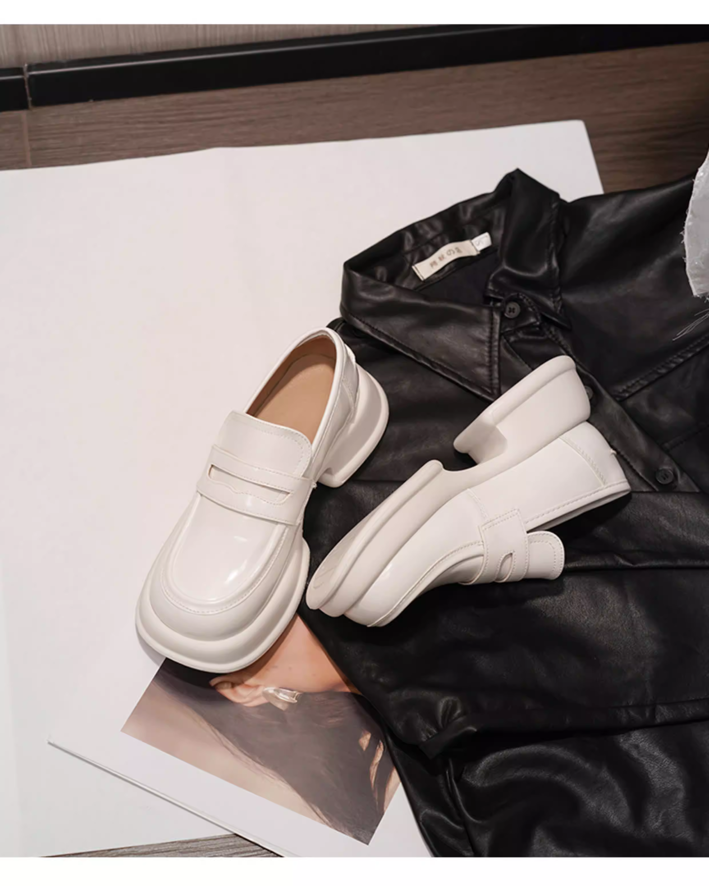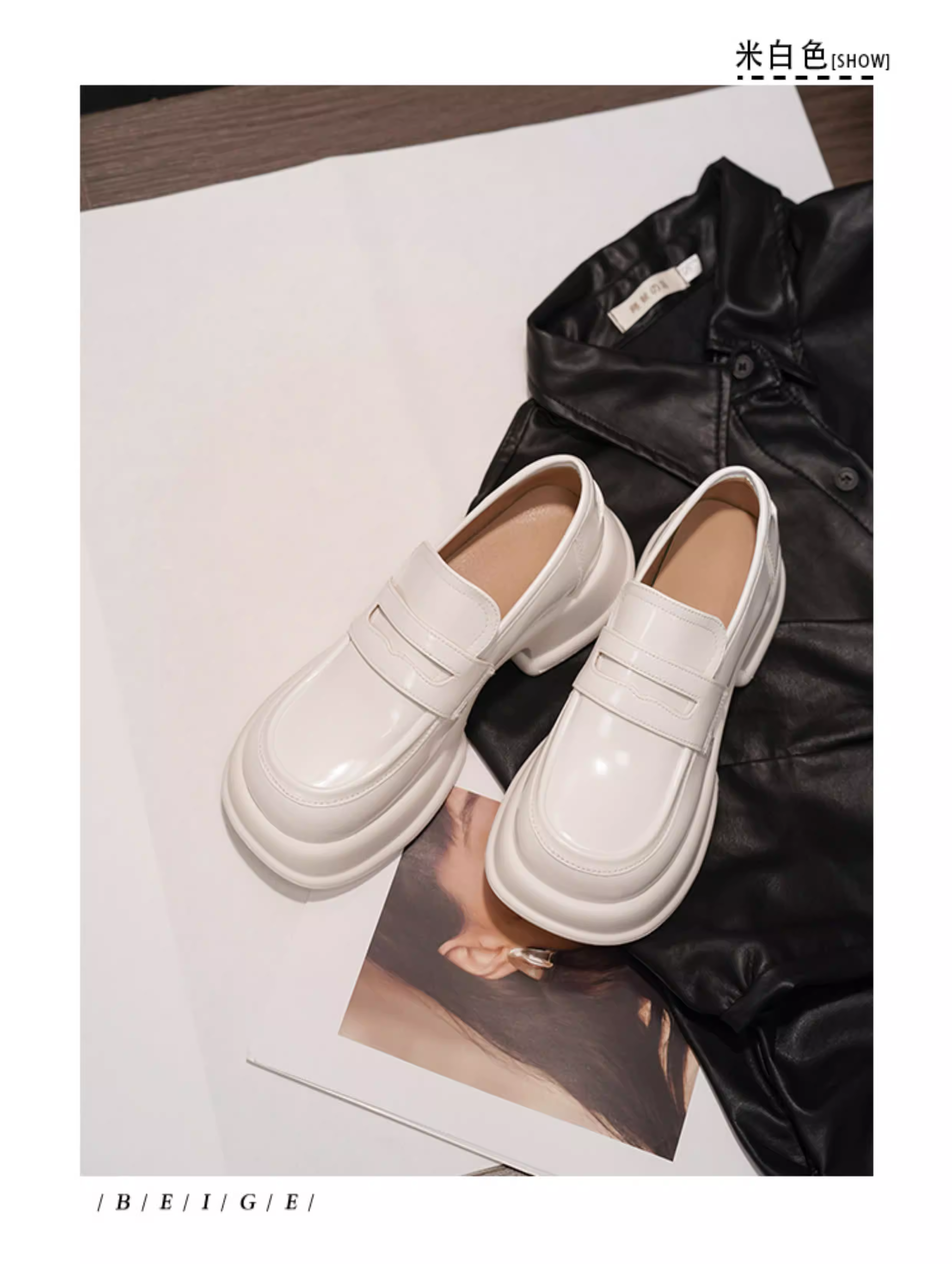 - Giày lười đế dày da thật màu trắng phong cách Zhao Lusi giày lười kiểu Anh Giày da nhỏ kiểu JK giày đơn nữ