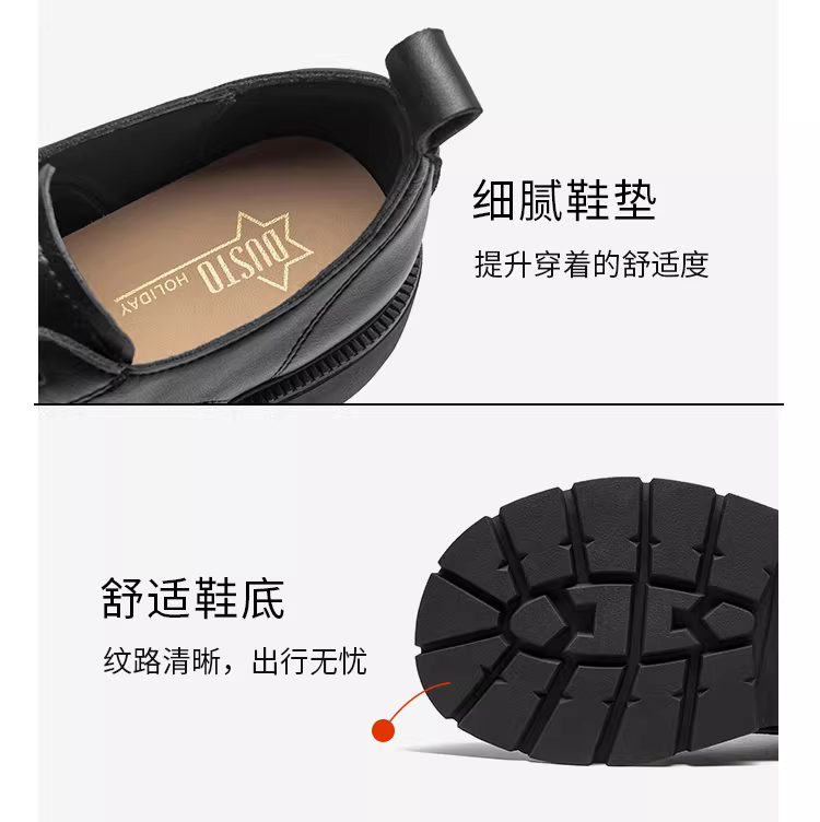 - Giày lười đế dày Dadong dành cho nữ 2025, giày công sở mùa thu đông mới, giày đơn màu đen phong cách Anh, giày da buộc dây nhỏ gọn