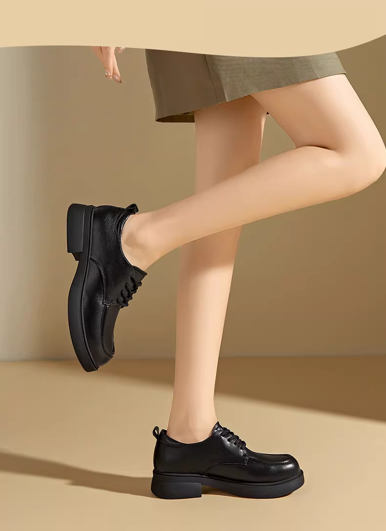 - Giày lười đế dày Dadong dành cho nữ 2025, giày đi làm mùa thu đông mới, giày Oxford nữ màu đen phong cách Anh, giày da nhỏ gọn