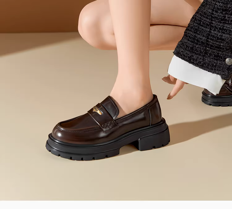 - Giày lười đế dày Dadong dành cho nữ 2025, giày nữ thu đông mới, phong cách Anh, đa năng, giày da đen, giày bệt đi làm