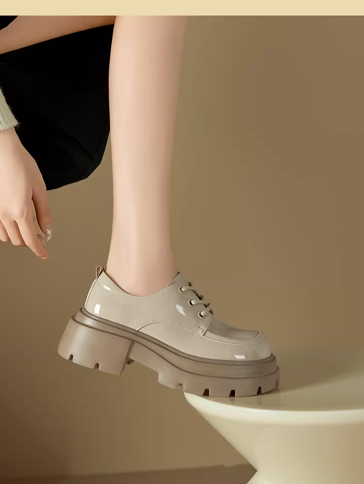 - Giày lười đế dày Dadong dành cho nữ 2025, kiểu Anh mới mùa thu đông, đa năng, giày da nhỏ, da bóng, gót dày, giày đơn, giày JK
