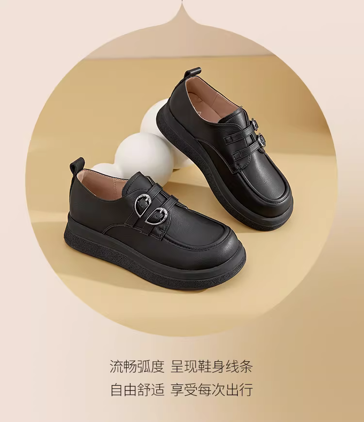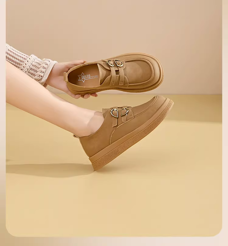 - Giày lười đế dày Dadong dành cho nữ 2025, kiểu dáng mới thu đông, retro, đế bằng, cổ sâu, phối chân váy, giày da nâu