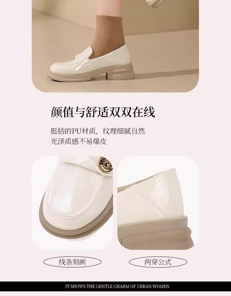 - Giày lười đế dày Dadong dành cho nữ 2025, mẫu mới thu đông, màu đen, giày đơn gót dày, phong cách Anh, giày da nhỏ kiểu JK dành cho nữ