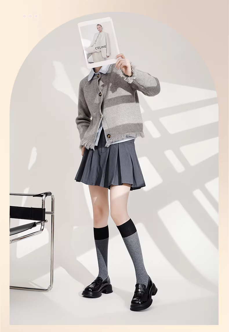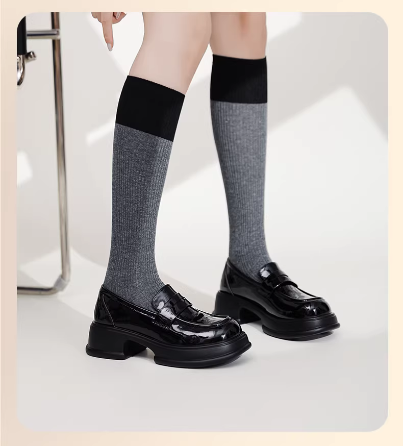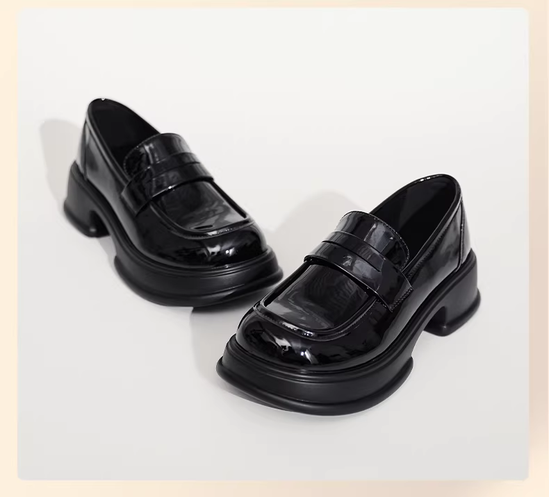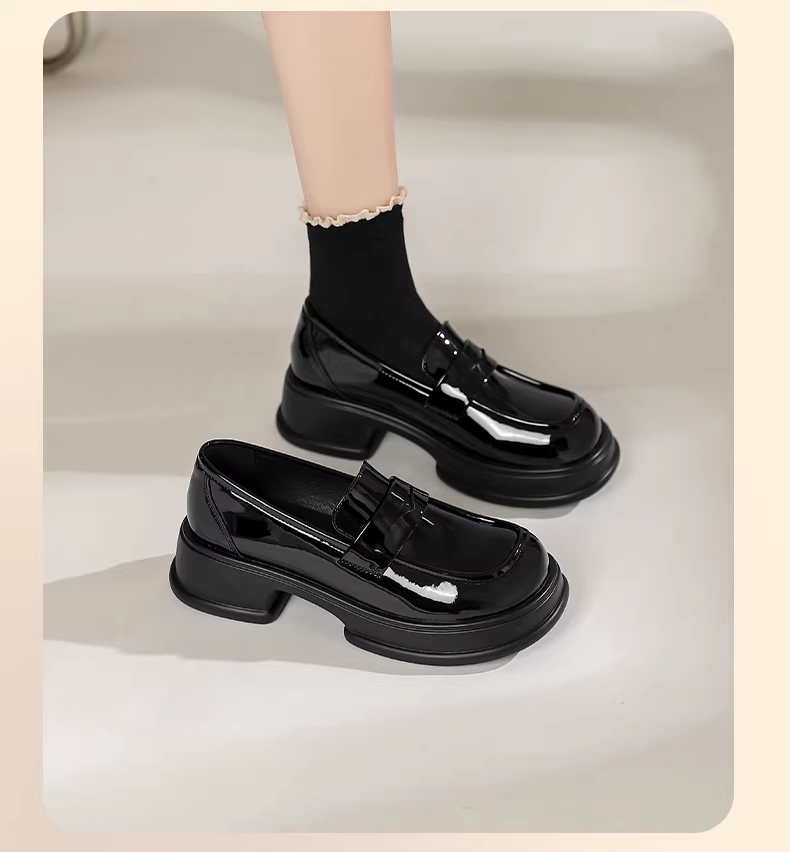- Giày lười đế dày Daphne dành cho nữ 2025 giày da bóng màu đen mới mùa thu đông giày nữ lót lông cừu đi làm giày bệt