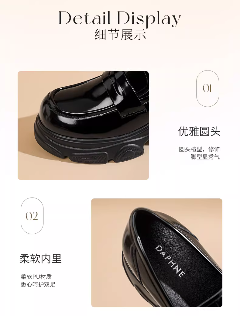 - Giày lười đế dày Daphne dành cho nữ 2025, kiểu Anh mới mùa hè, giày da nhỏ phối chân váy, giày đế xuồng tăng chiều cao.