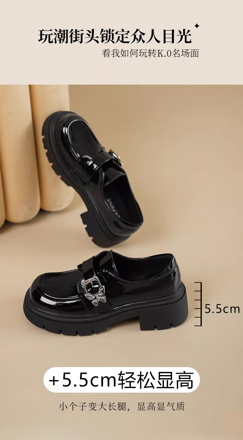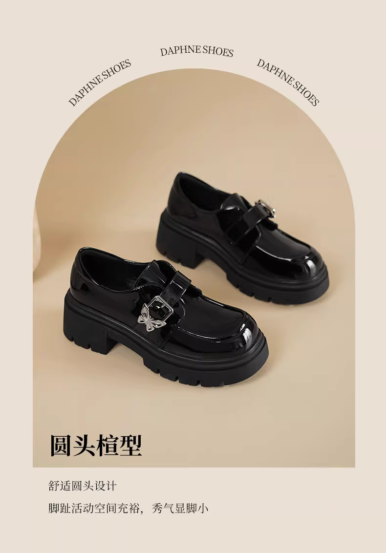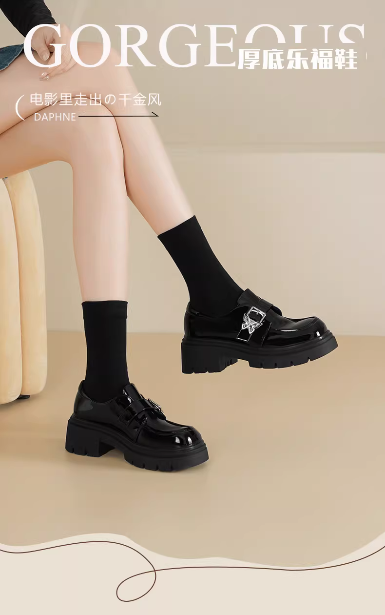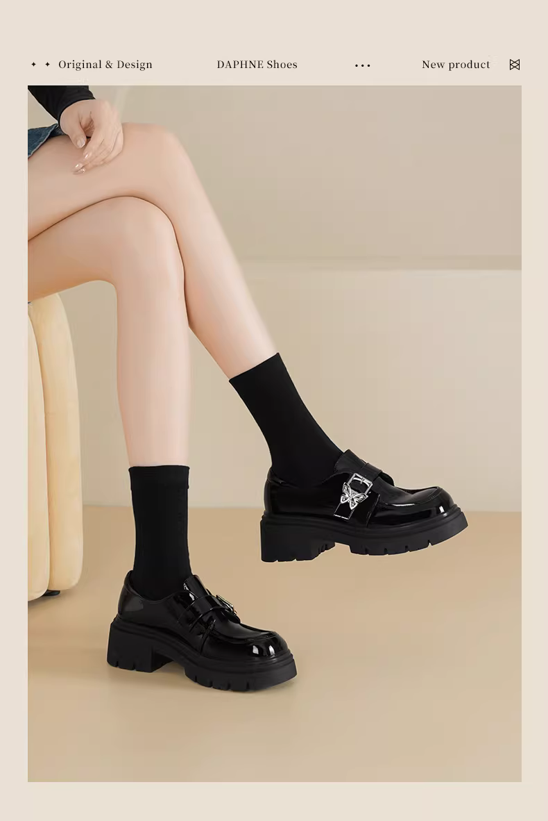 - Giày lười đế dày Daphne dành cho nữ 2025 kiểu Anh mới mùa thu, giày da đen kiểu bướm, giày bệt đi làm cho nữ