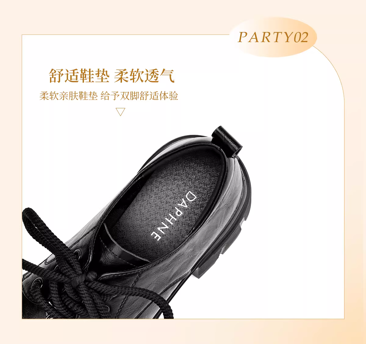 - Giày lười đế dày Daphne dành cho nữ 2025, kiểu Anh, mùa thu đông mới, màu đen, dây buộc, chất liệu da, tăng chiều cao, giày đơn.