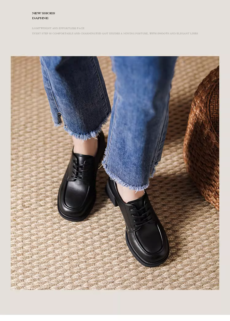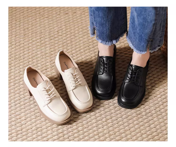 - Giày lười đế dày Daphne dành cho nữ, giày mùa thu 2025 màu trắng, kiểu Anh, giày da nhỏ, phong cách retro Pháp, giày đơn nữ