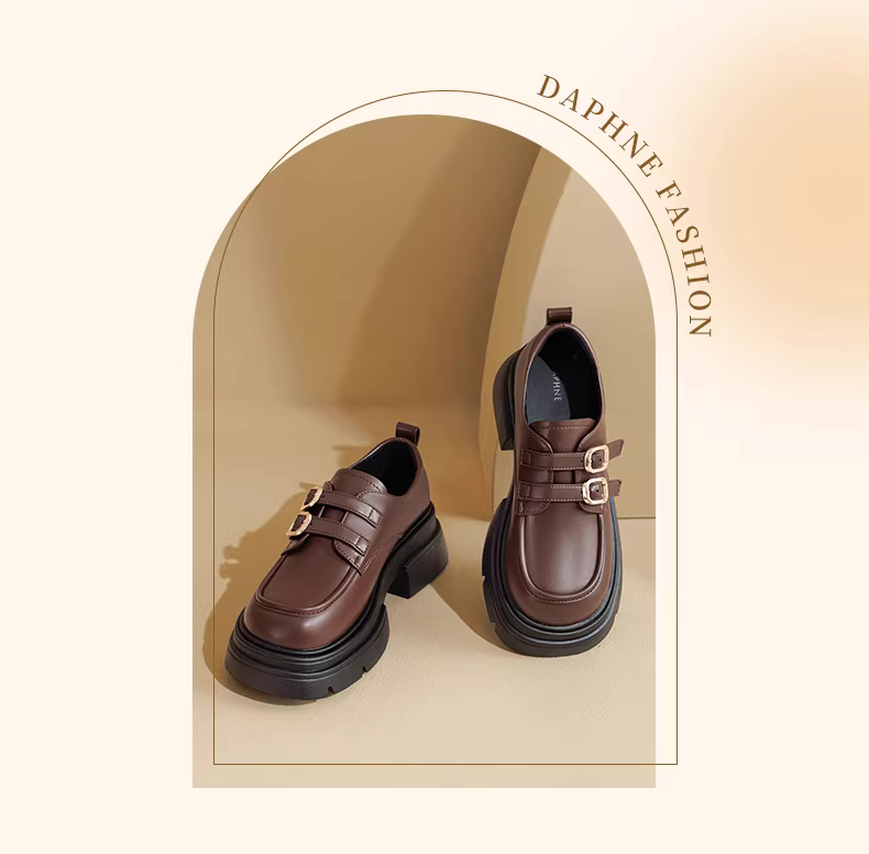 - Giày lười đế dày Daphne dành cho nữ, phong cách cổ điển của Anh, giày đơn lấy cảm hứng từ Chanel, giày da thông thường tăng chiều cao, đa năng.