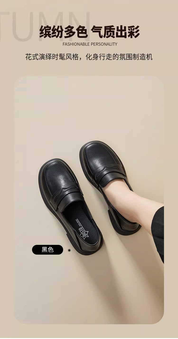 - Giày lười đế dày màu đen Dadong dành cho nữ 2025 mới thu đông phong cách Anh quốc giày da nữ đế mềm đi làm