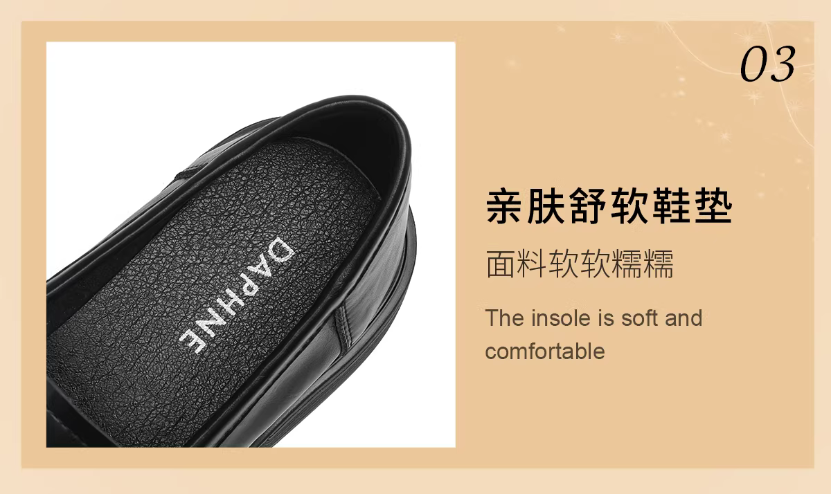 - Giày lười đế dày màu nâu Daphne dành cho nữ 2025, kiểu mới, dễ mang, đế mềm, giày da nhỏ, giày bệt nữ, giày đơn.