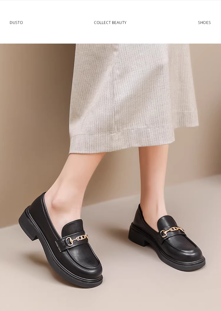 - Giày lười đế mềm màu đen Dadong dành cho nữ 2025, giày nữ thu đông mới, đế dày, đa năng, gót chunky, phong cách Anh, giày da nhỏ gọn