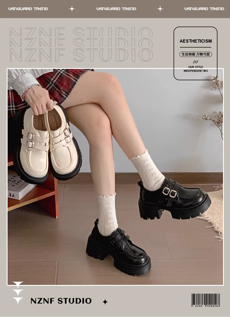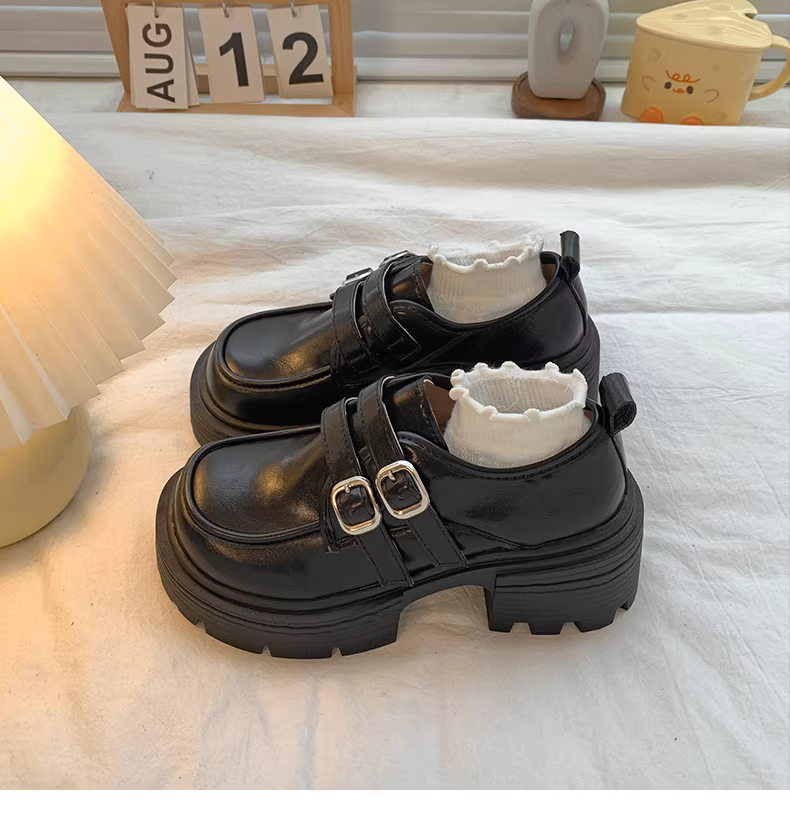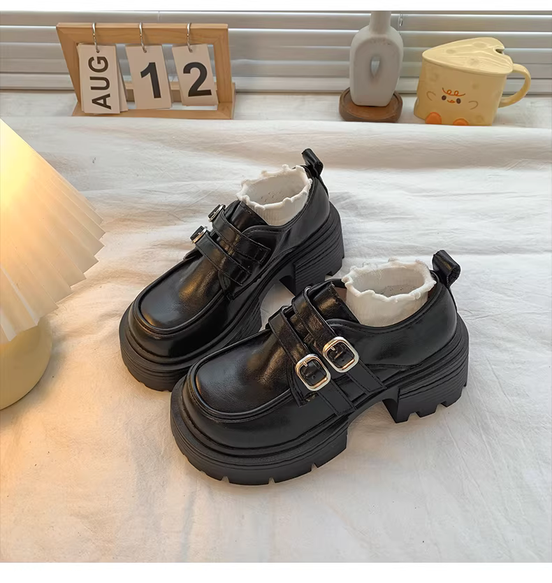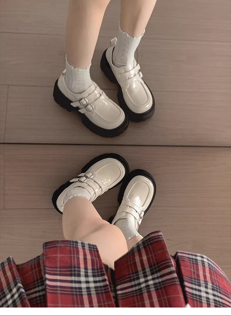 - Giày lười đế xuồng cao gót kiểu Anh trắng, dành cho nữ, mẫu mới thu đông 2025, đa năng, tăng chiều cao, đế mềm.
