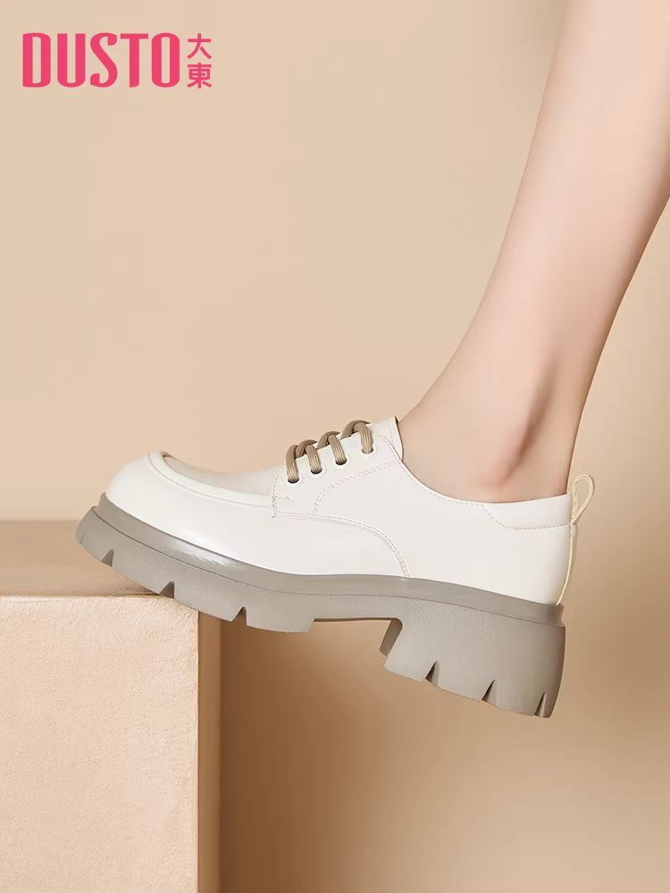 - Giày lười đế xuồng chunky màu đen Dadong dành cho nữ, mẫu mới thu đông 2025, kiểu Anh, dây buộc, chất liệu da, kiểu dáng khoét sâu, giày đơn.