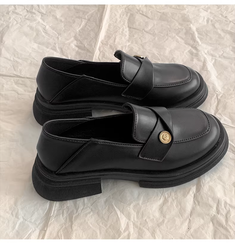 - Giày lười đế xuồng kiểu Anh màu đen dành cho nữ, mẫu mới mùa thu 2025, thích hợp phối cùng chân váy.