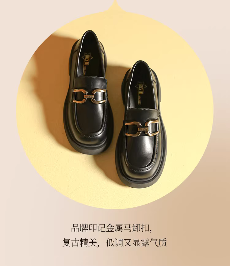 - Giày lười đen Dadong dành cho nữ, kiểu mới thu đông 2025, kiểu Anh, mũi rộng, giày da nhỏ, đế dày tăng chiều cao, giày JK nữ.