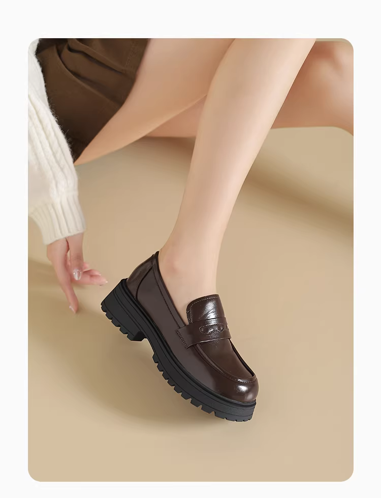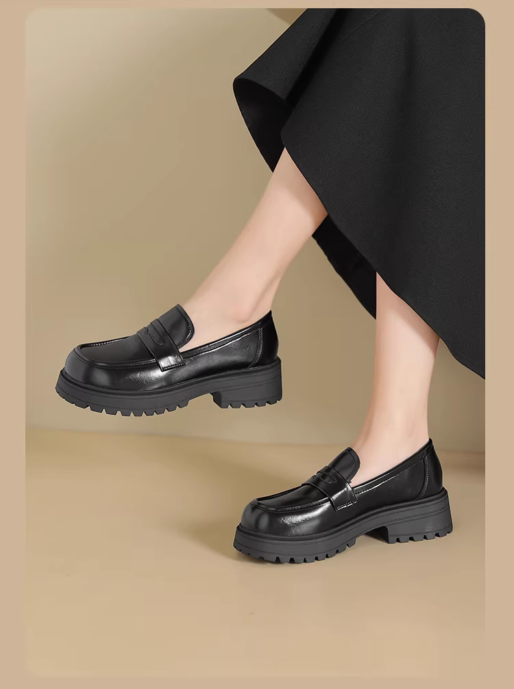 - Giày lười kiểu Anh Dadong dành cho nữ, giày đen mới mùa thu đông 2025, giày đơn đế dày gót cao, giày da nhỏ kiểu lười.