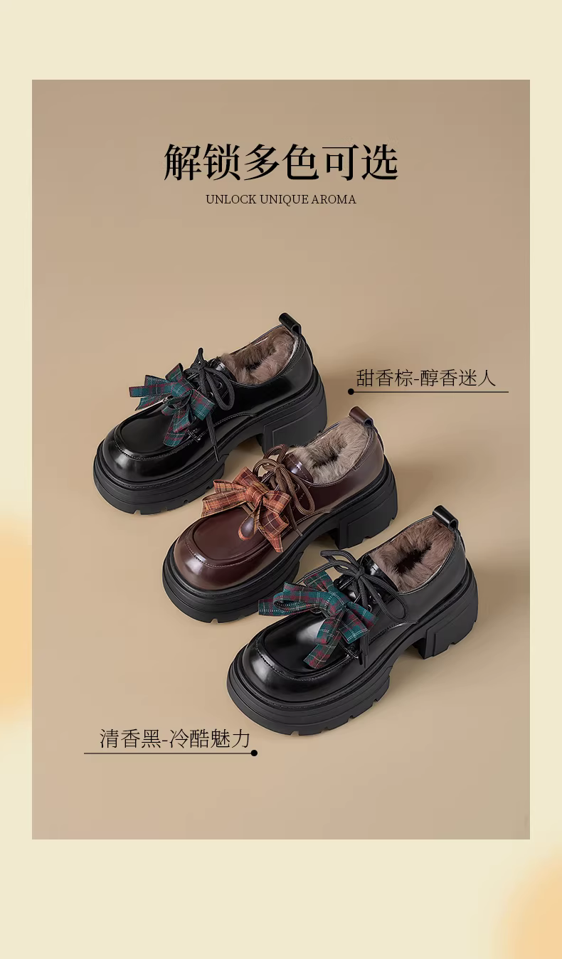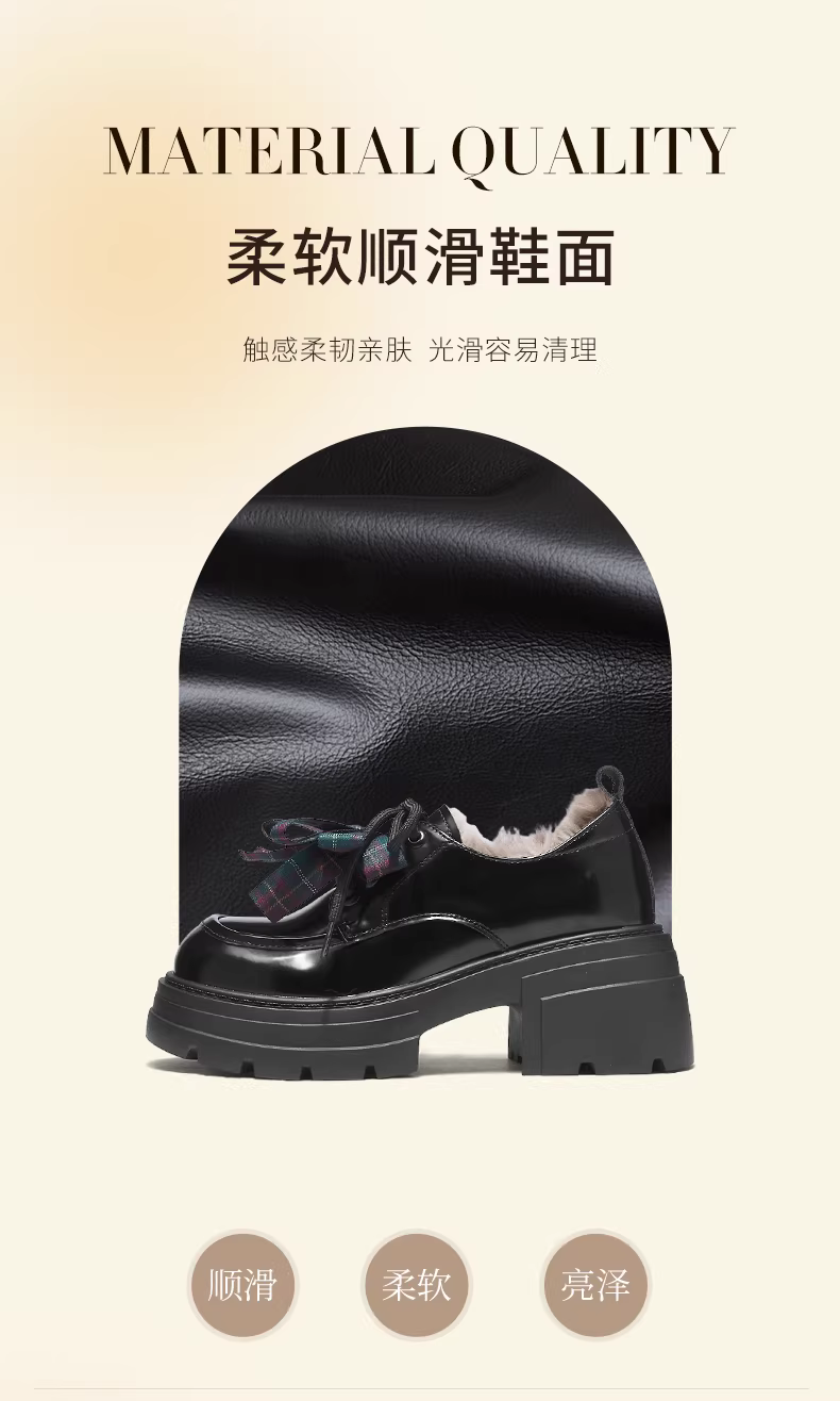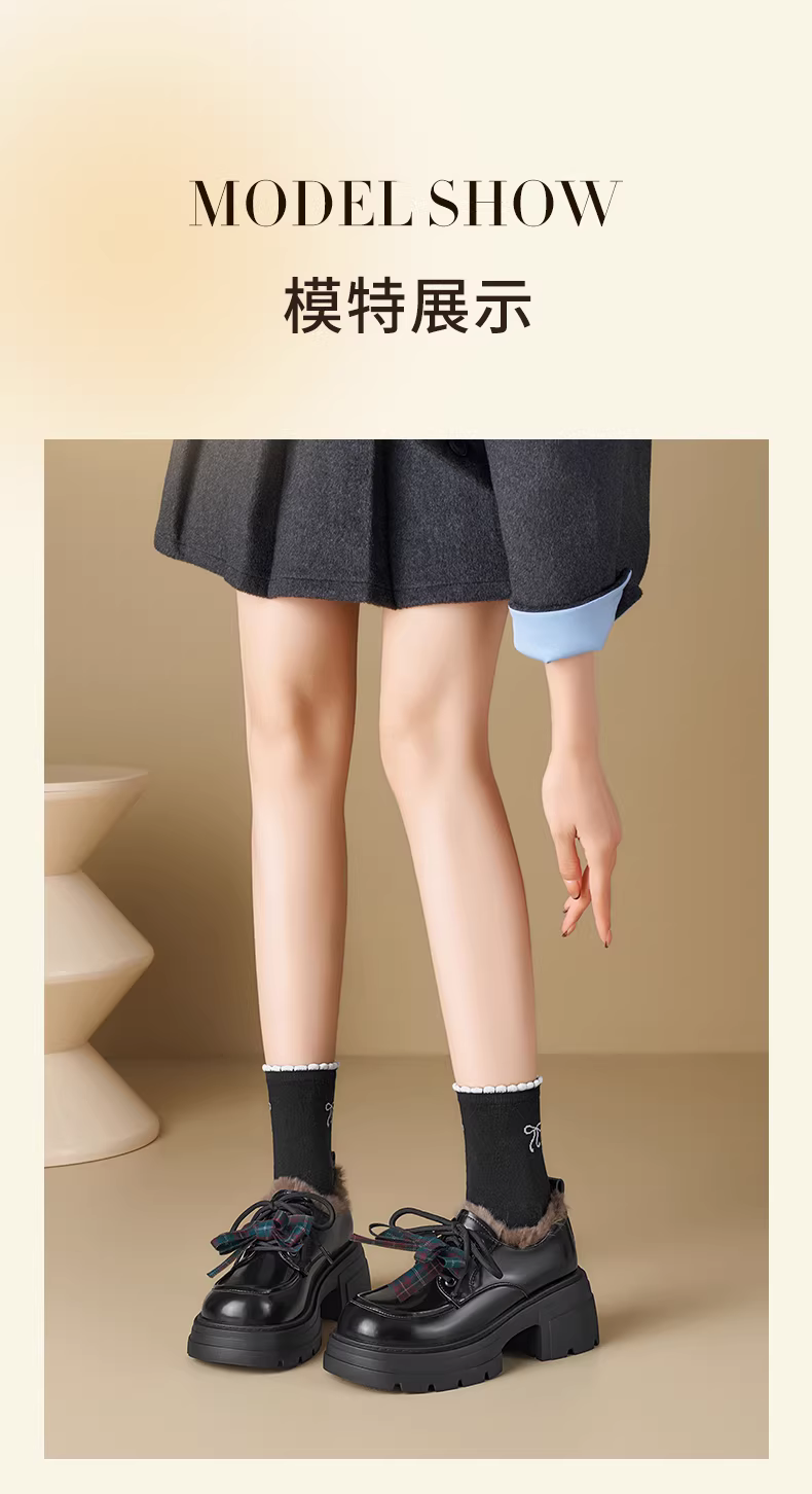 - Giày lười lót lông Daphne dành cho nữ 2025 kiểu Anh mới mùa đông, giày đơn đế dày, giày cotton, giày da đen